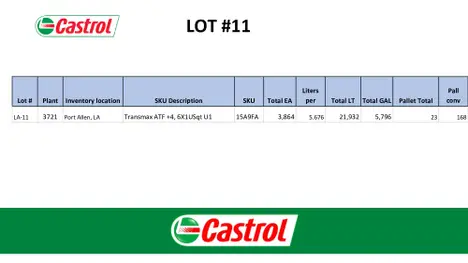 Surplus Castrol Motor Oil from the Ongoing Operations of BP Oil