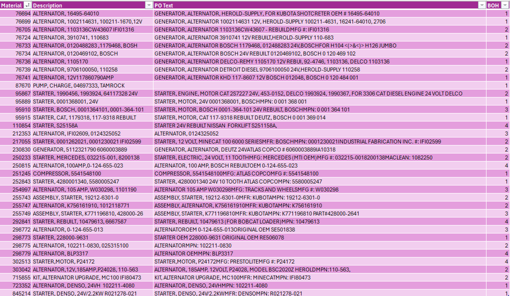 BULK LIST OF MISC STARTERS AND ALTERNATORS FOR MOBILE EQUIPMENT