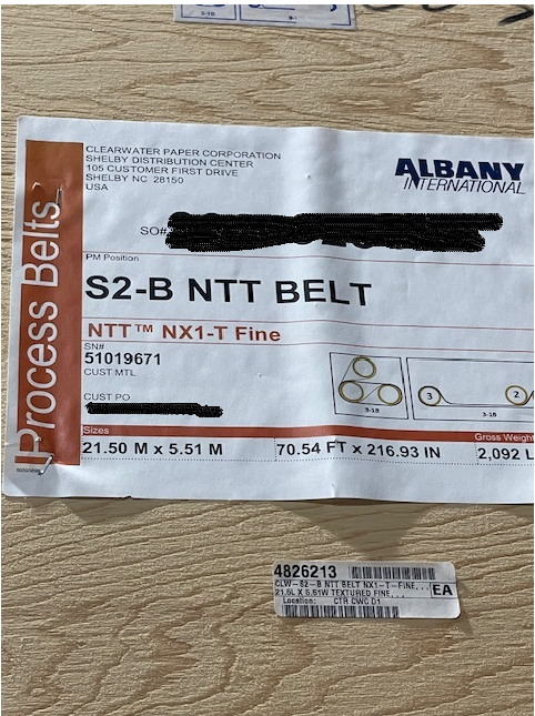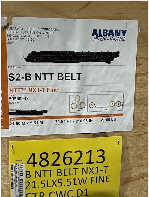 BULK LOT OF 2019 ALBANY INTERNATIONAL NX1-T BELTS FOR AN NTT TISSUE MACHINE