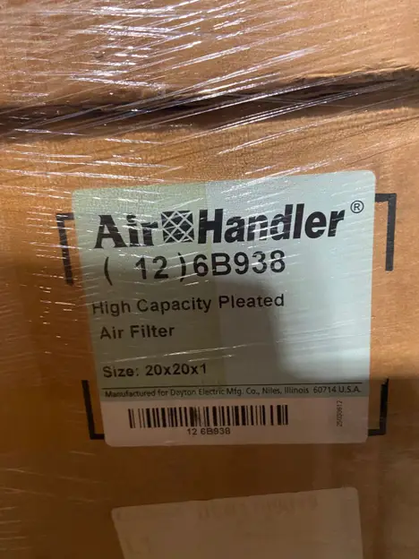 (1216B938 - HIGH CAPACITY PLEATED AIR FILTER, SIZE: 20X20X1 - DAYTON ELECTRIC MFG. CO.