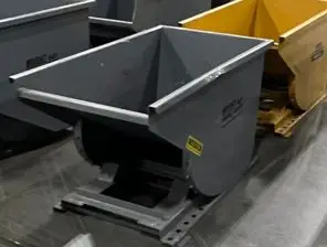 Lot of QTY 2 1 cubic foot dump bins, QTY 1 2 cubic yard self-dumping hopper. Condition: Very Good, Condition Detail: Bins had very little usage, self-dumping hopper. Condition: Very Good, Condition Detail: Bins had very little usage.