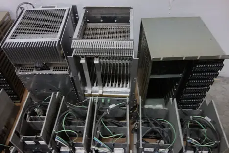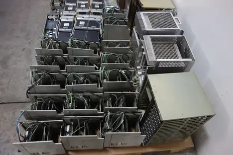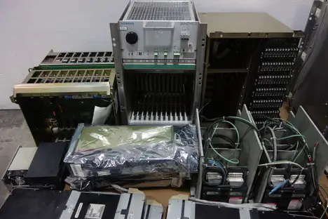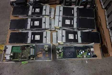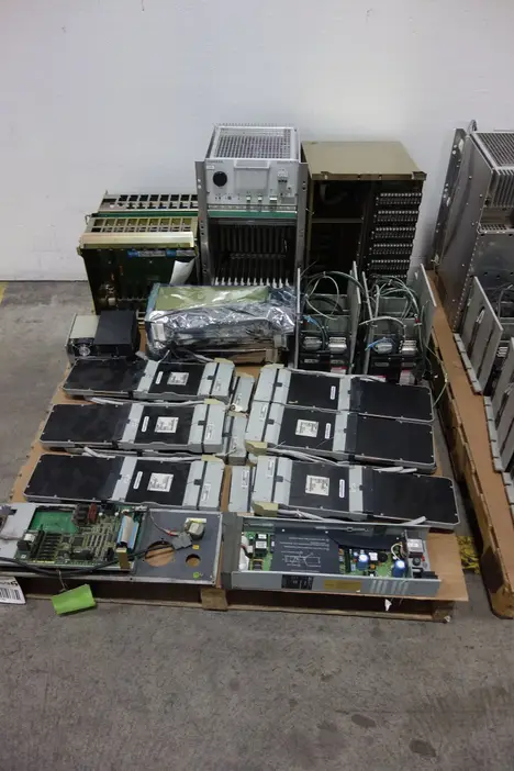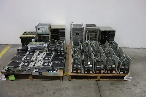 2 PALLETS OF ASSORTED AUTOMATION - RACK WITH POWER SUPPLY, CHASSIS MODULES, SERVO DRIVES AND AMPLIFIER, MICRO CONTROLLER MODULEA, KEYPAD OPERATOR INTERFACE PANEL - FISHER, SIEMENS, KEYENCE, ABB, FOXBORO
