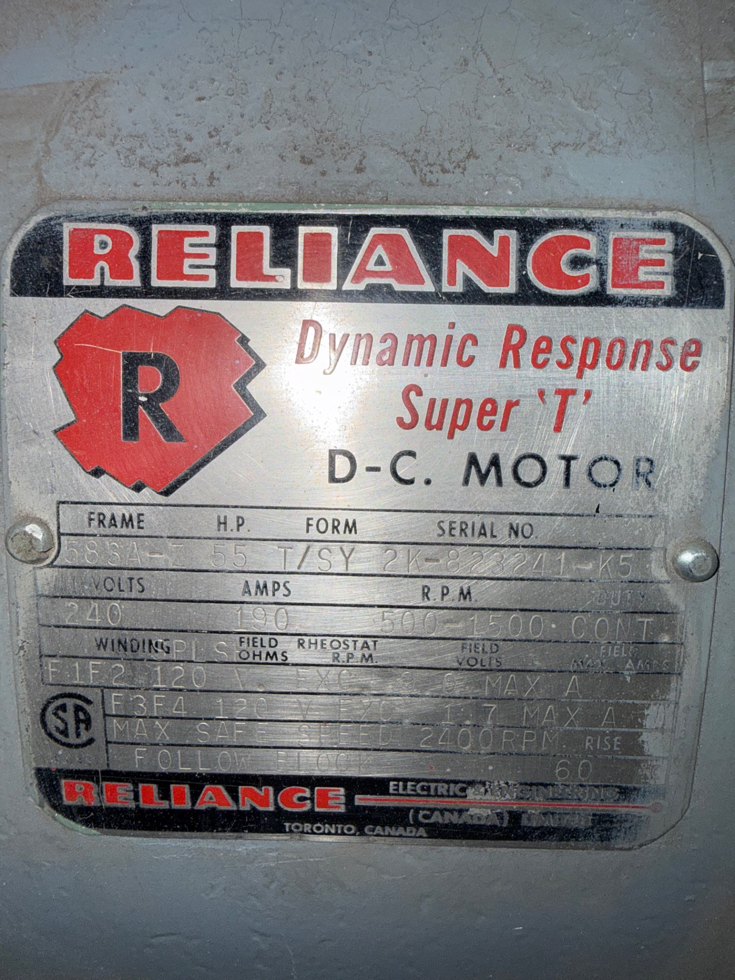 - RELIANCE 55 HP / 240 V / 500-1500 RPM