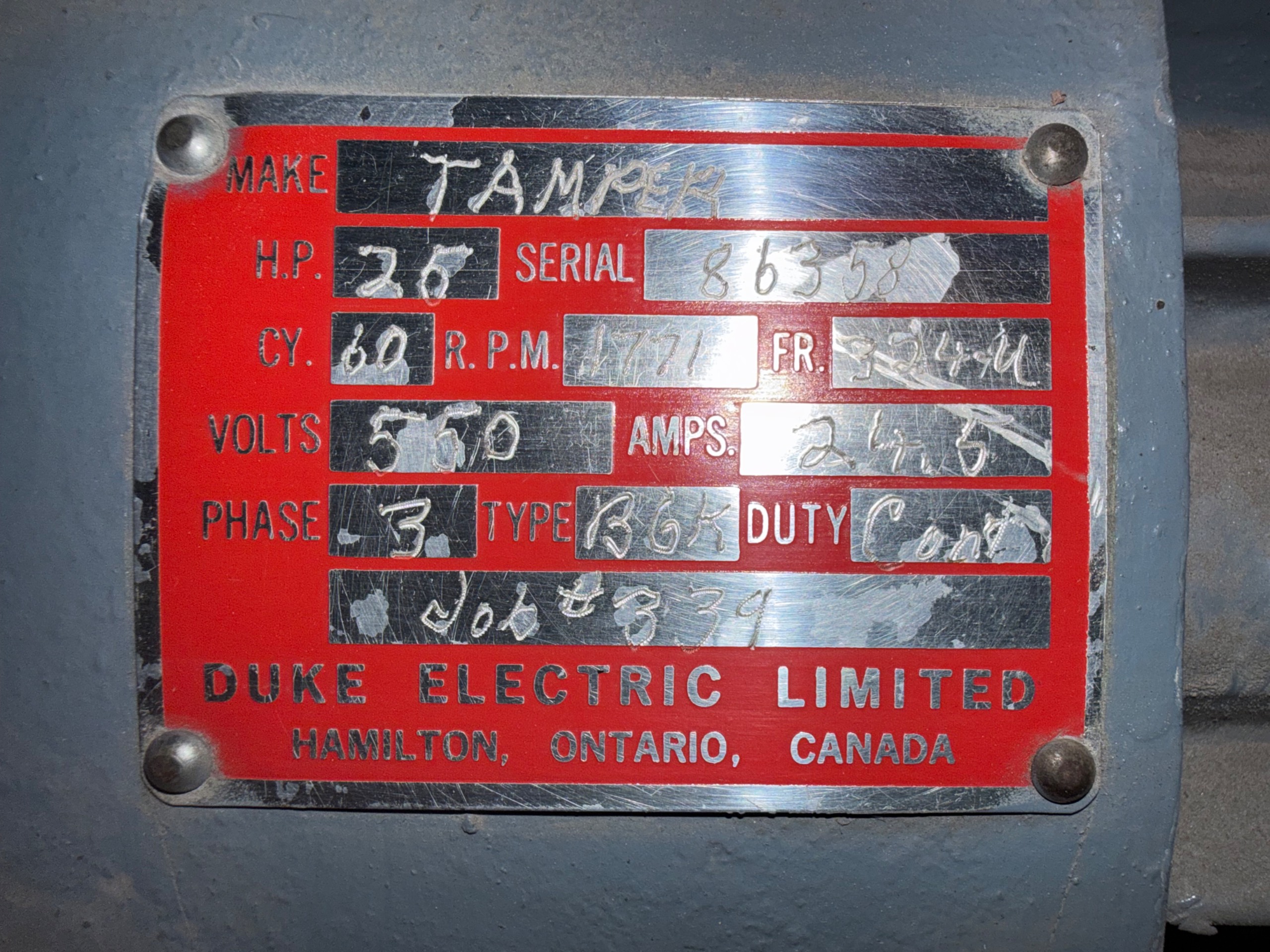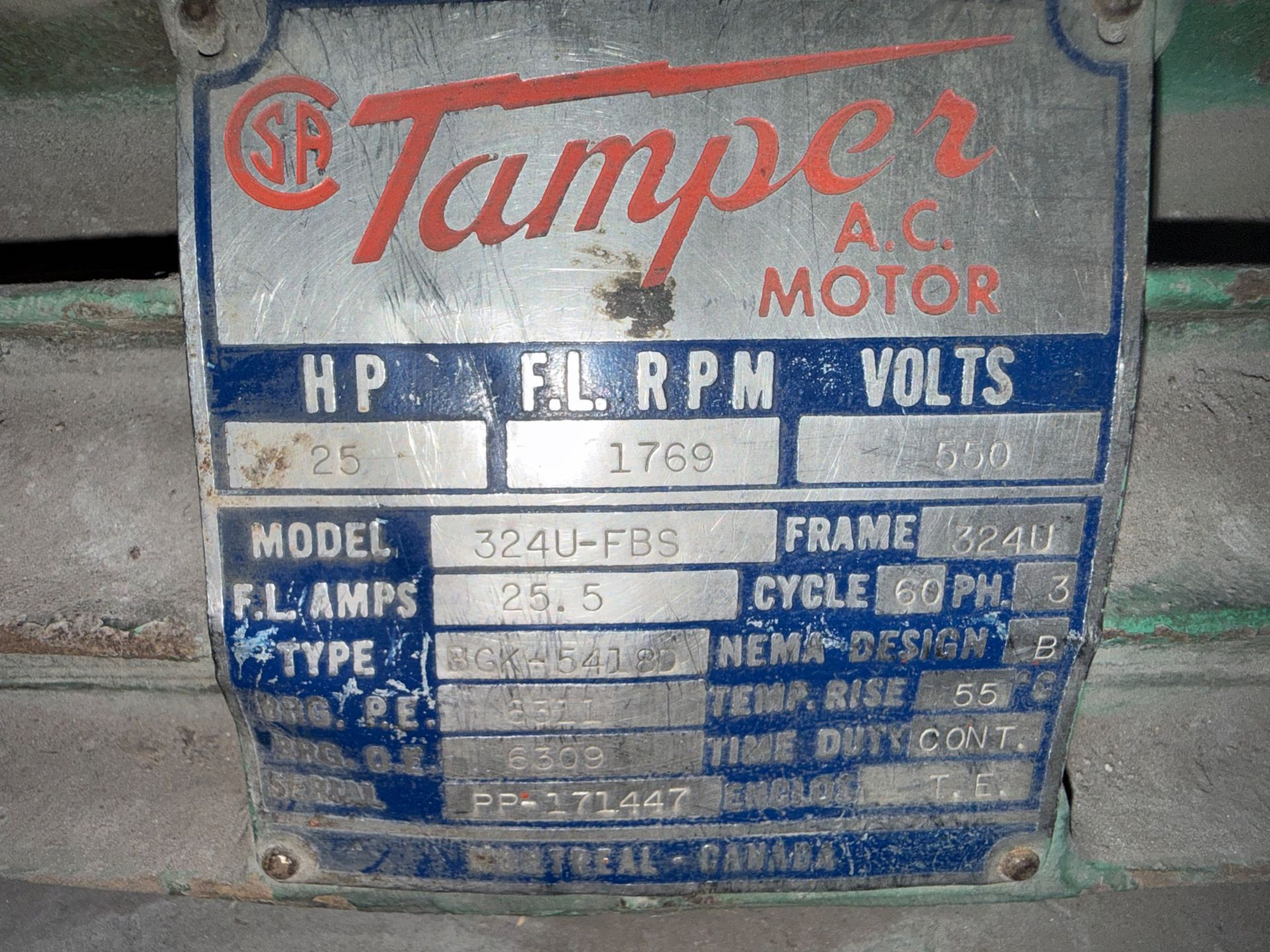 - TAMPER 25 HP / 550 V / 60 HZ / 3 PH / 1771 RPM