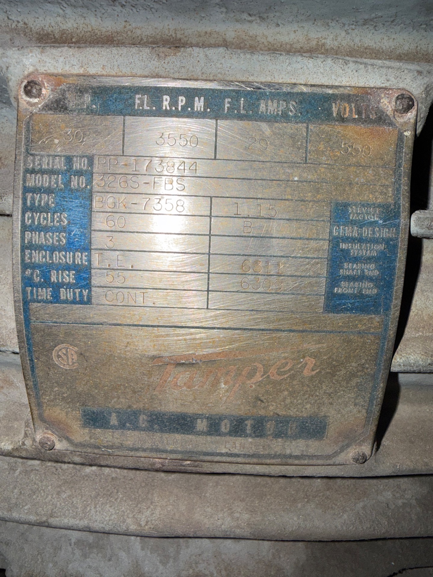 - TAMPER 30 HP / 550 V / 60 HZ / 3 PH / 3550 RPM