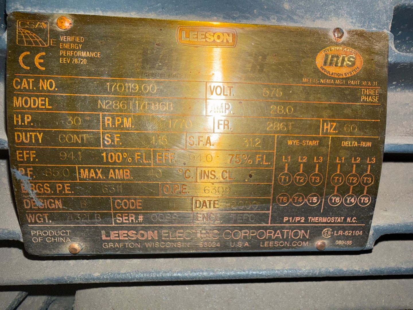 - LEESON 30 HP / 575 V / 60 HZ / 3 PH / 1770 RPM