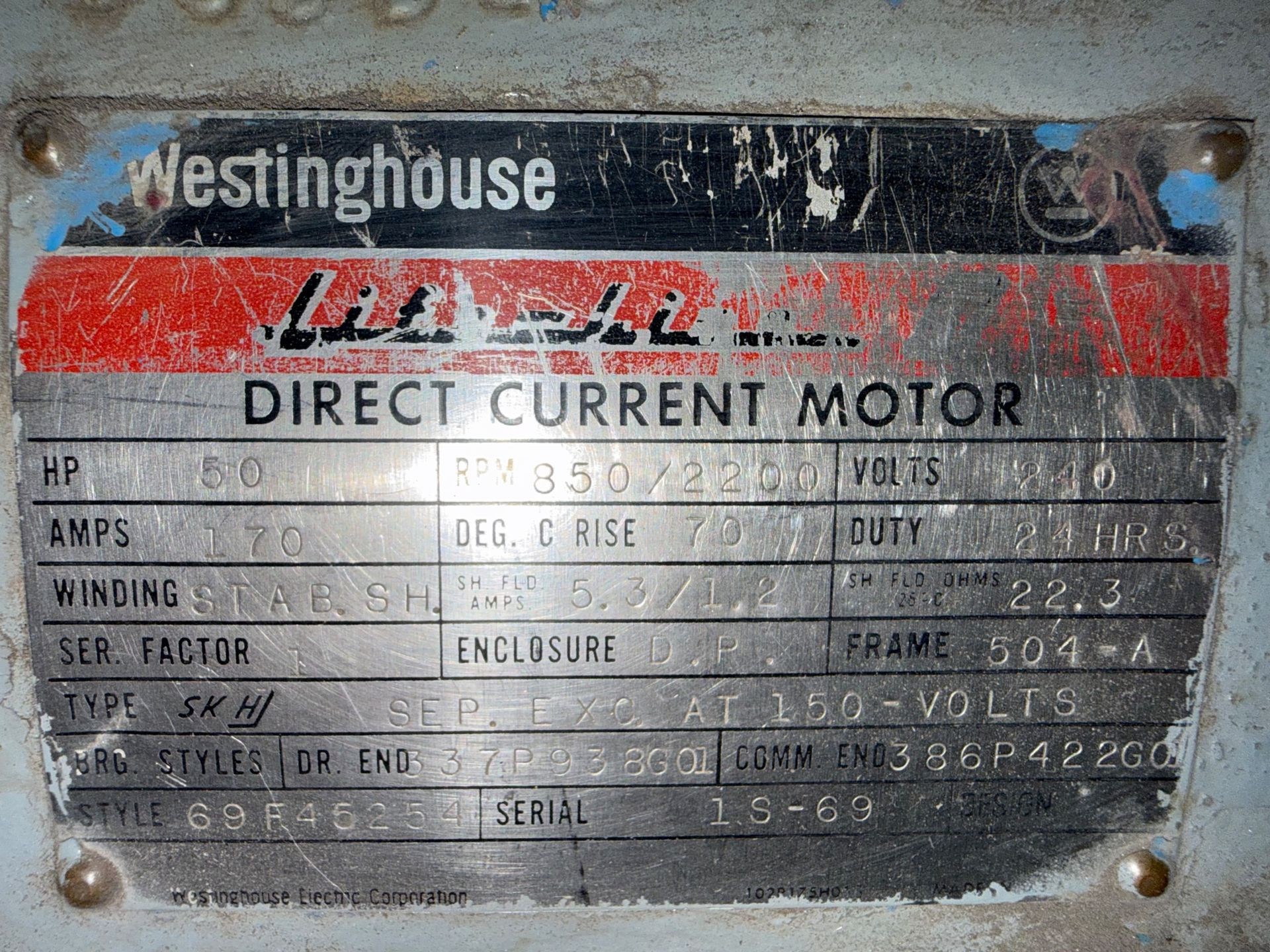 - WESTINGHOUSE 50 HP / 240 V / 850/2200 RPM
