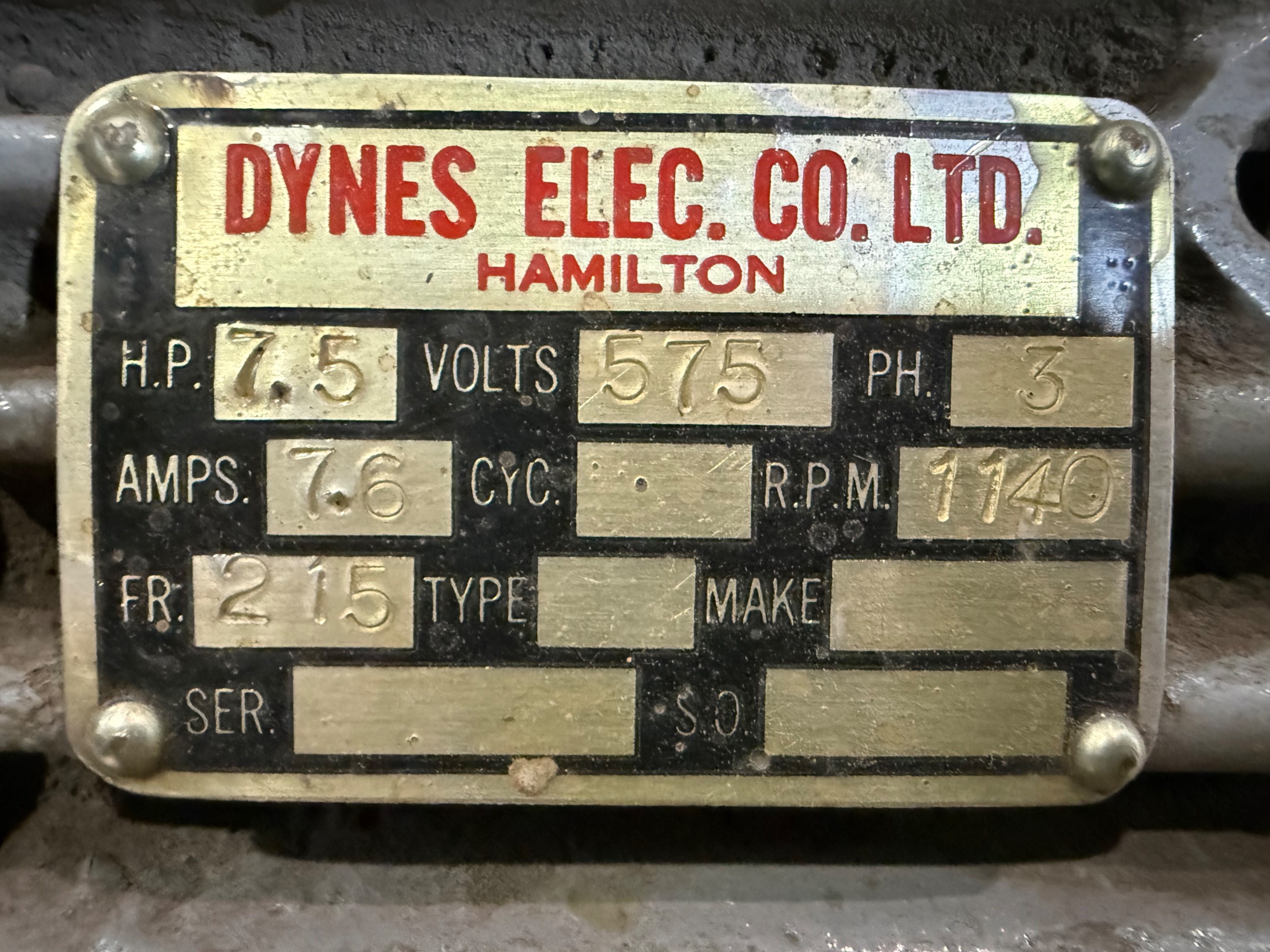 - DYNES 7.5 HP / 575 V / 3 PH / 1140 RPM