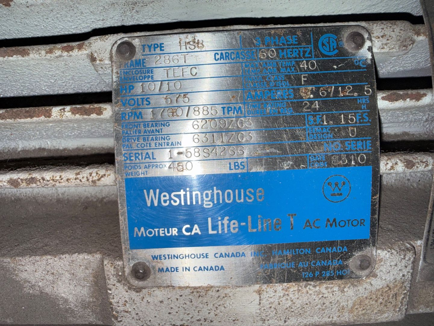 - WESTINGHOUSE 10/10 HP / 575 V / 60 HZ / 3 PH / 1760/885 RPM
