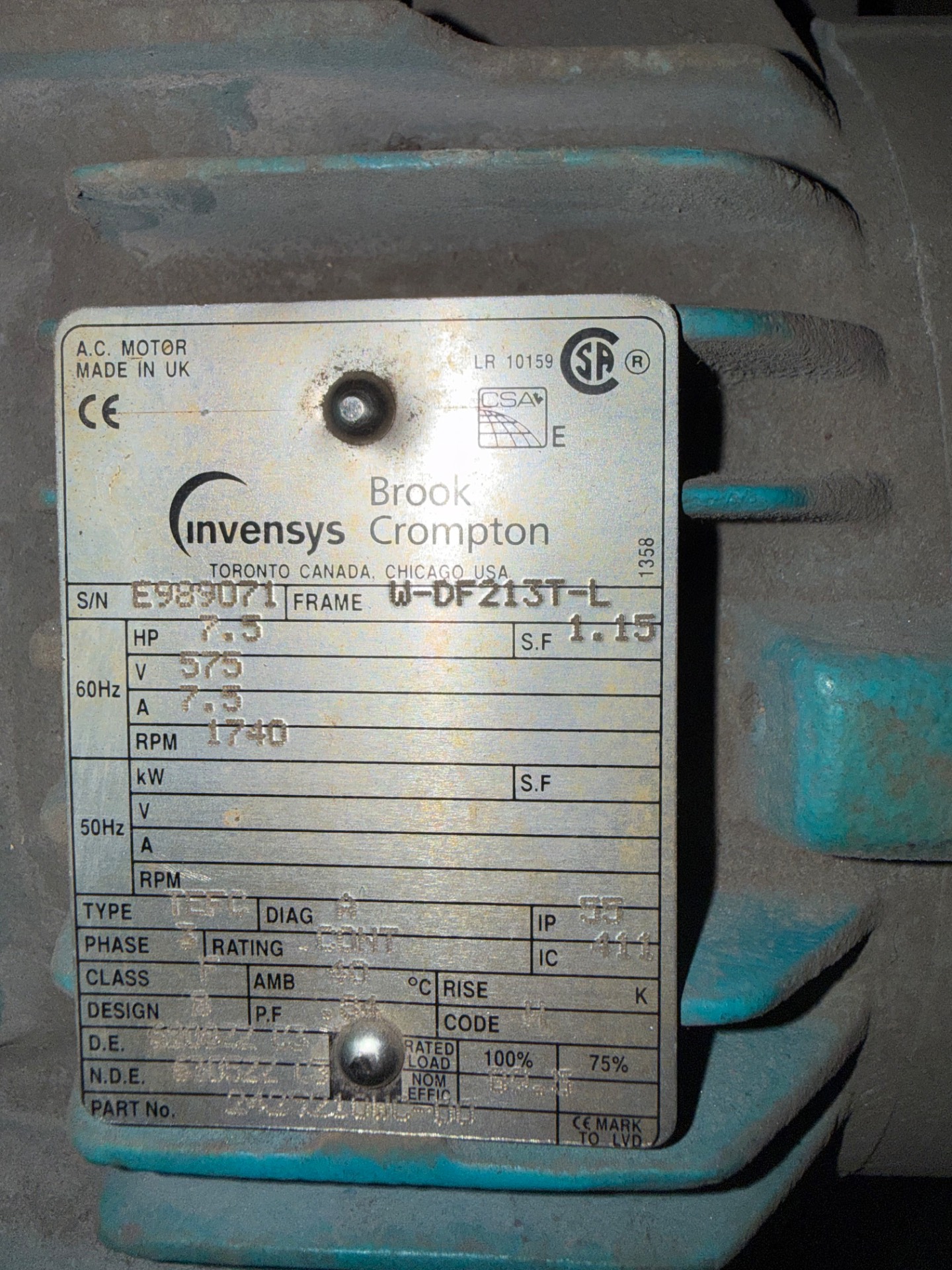 - BROOK CROMPTON 7.5 HP / 575 V / 60 HZ / 3 PH / 1740 RPM