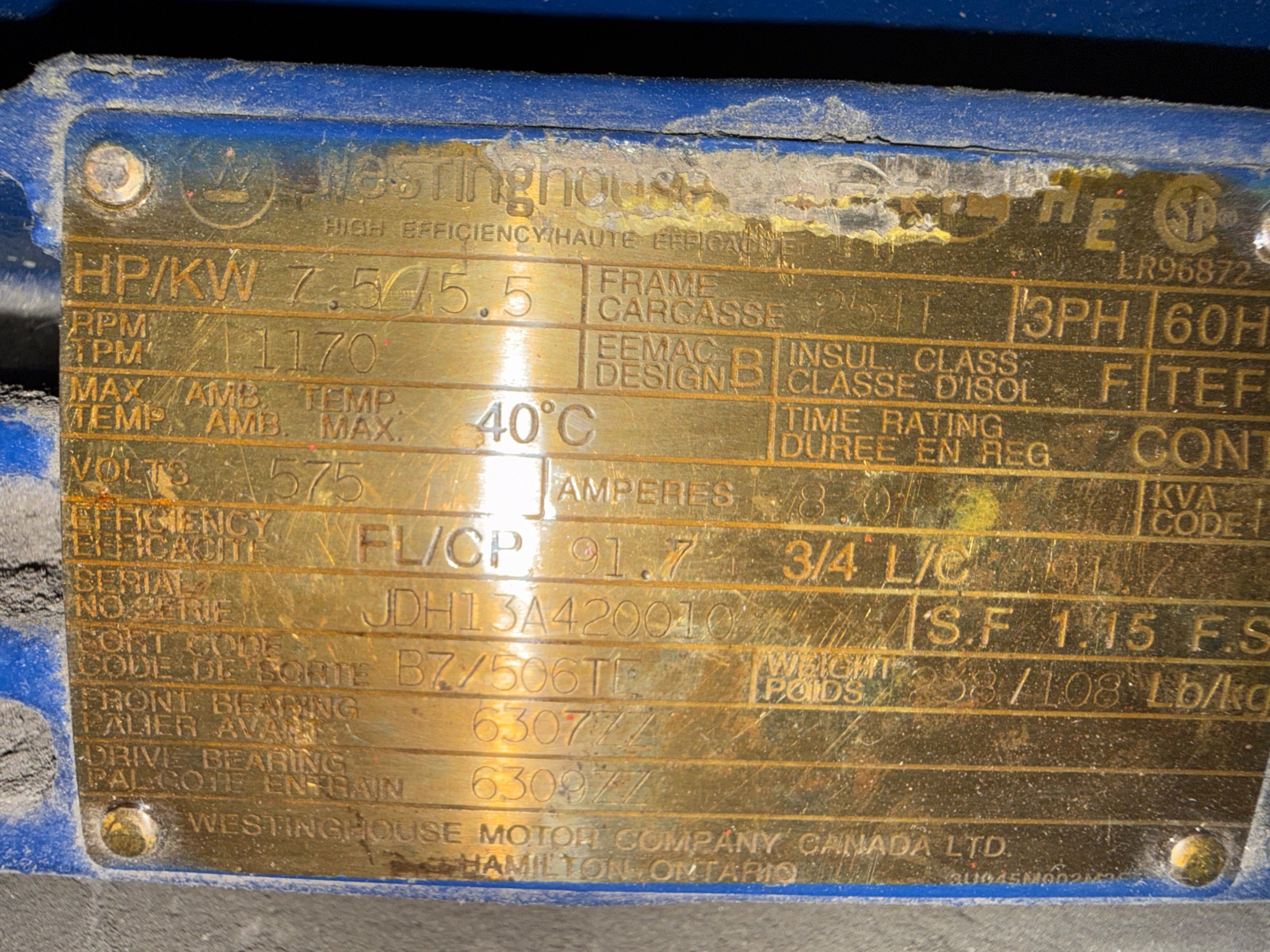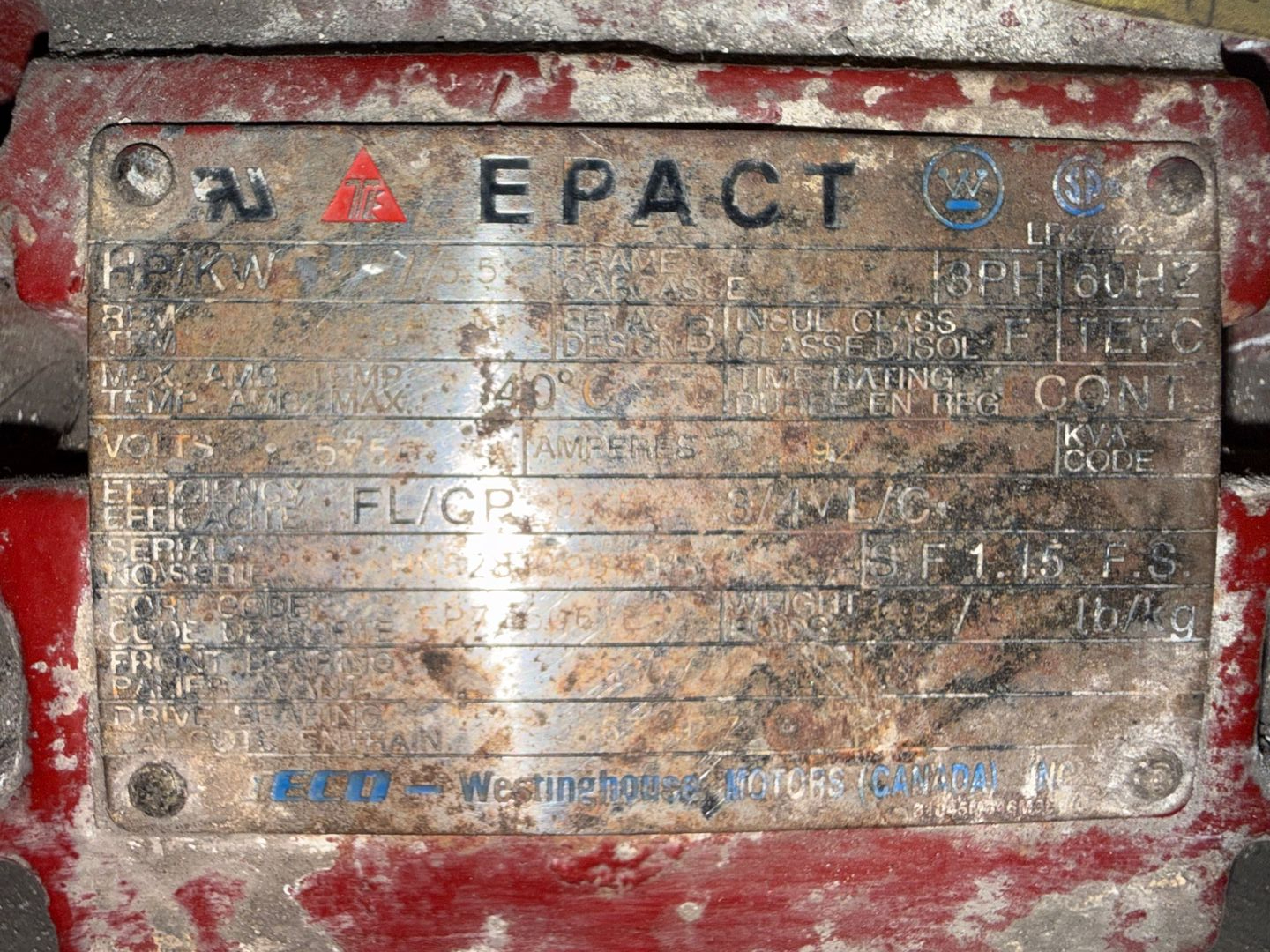- WESTINGHOUSE 7.5 HP / 575 V / 60 HZ / 3 PH / 1170 RPM