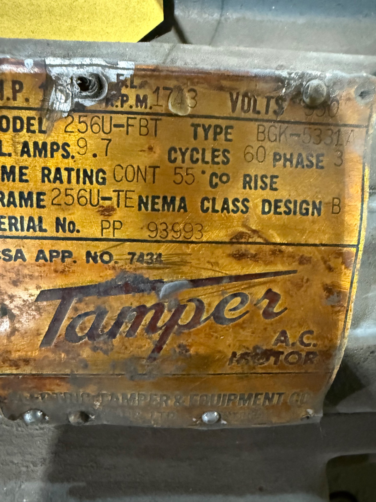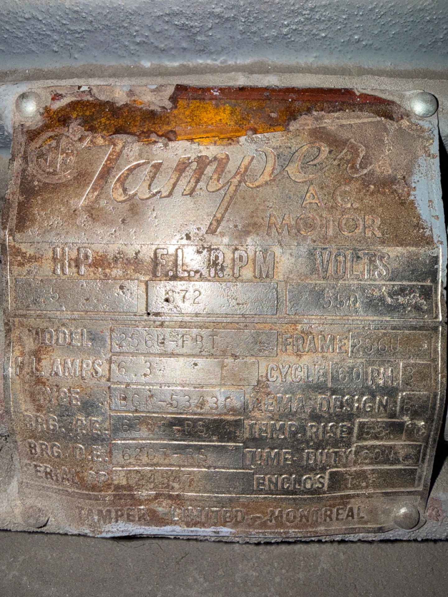 - TAMPER 5 HP / 550 V / 60 HZ / 3 PH / 872 RPM