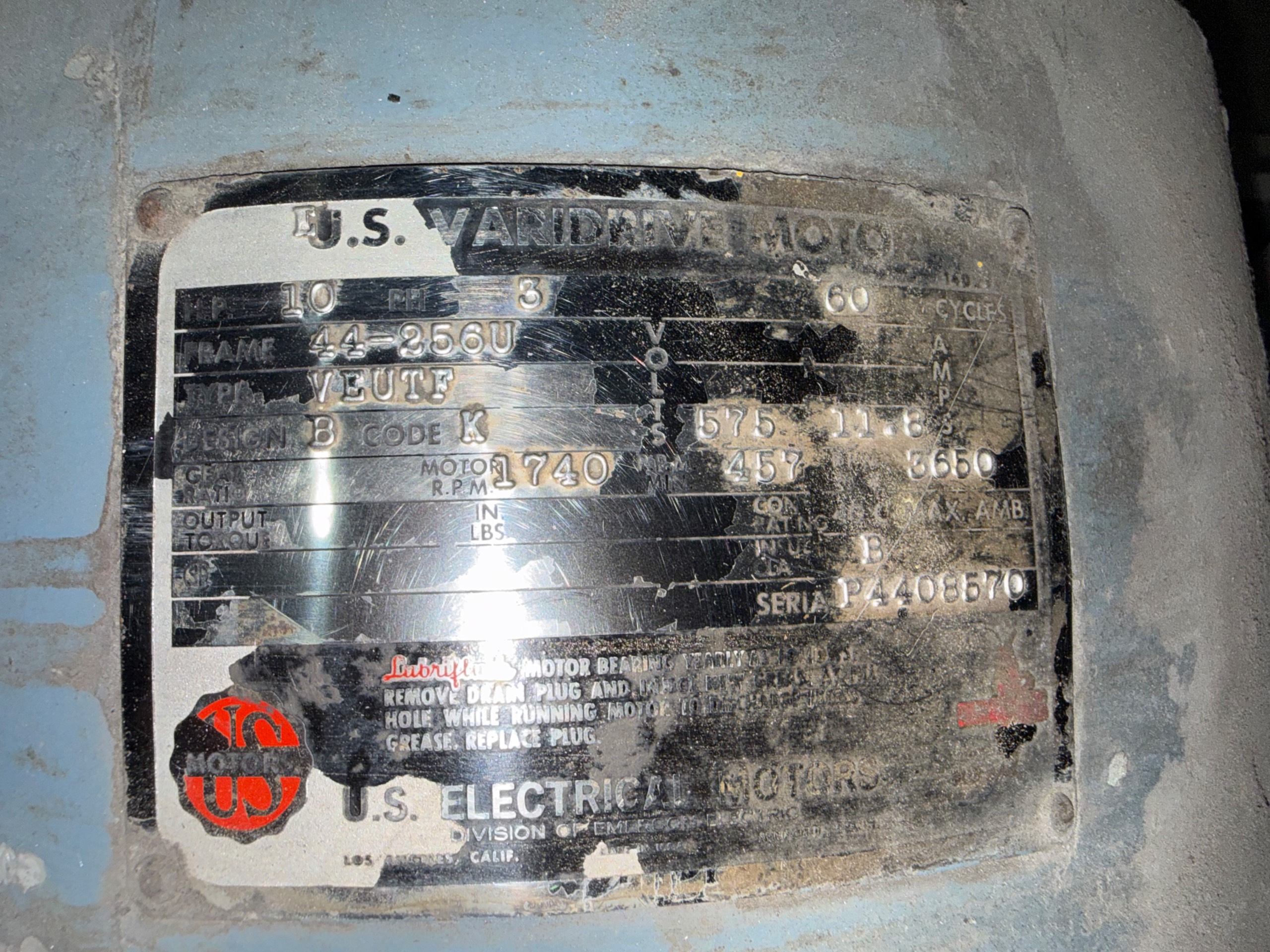 - U.S. VARIDRIVE 10 HP / 575 V / 60 HZ / 3 PH / 457/1740 RPM