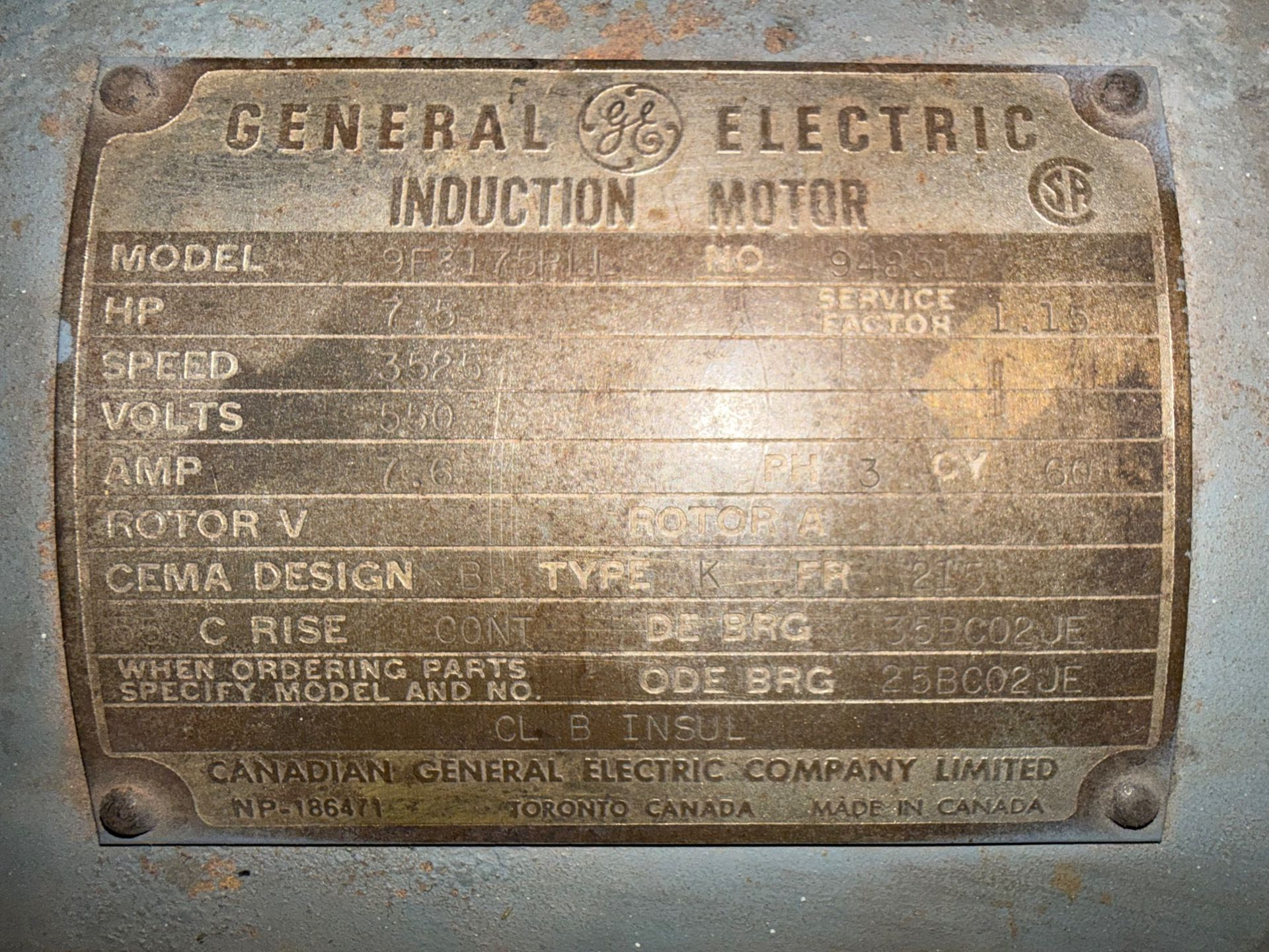 - GENERAL ELECTRIC 7.5 HP / 550 V / 60 HZ / 3 PH / 3525 RPM