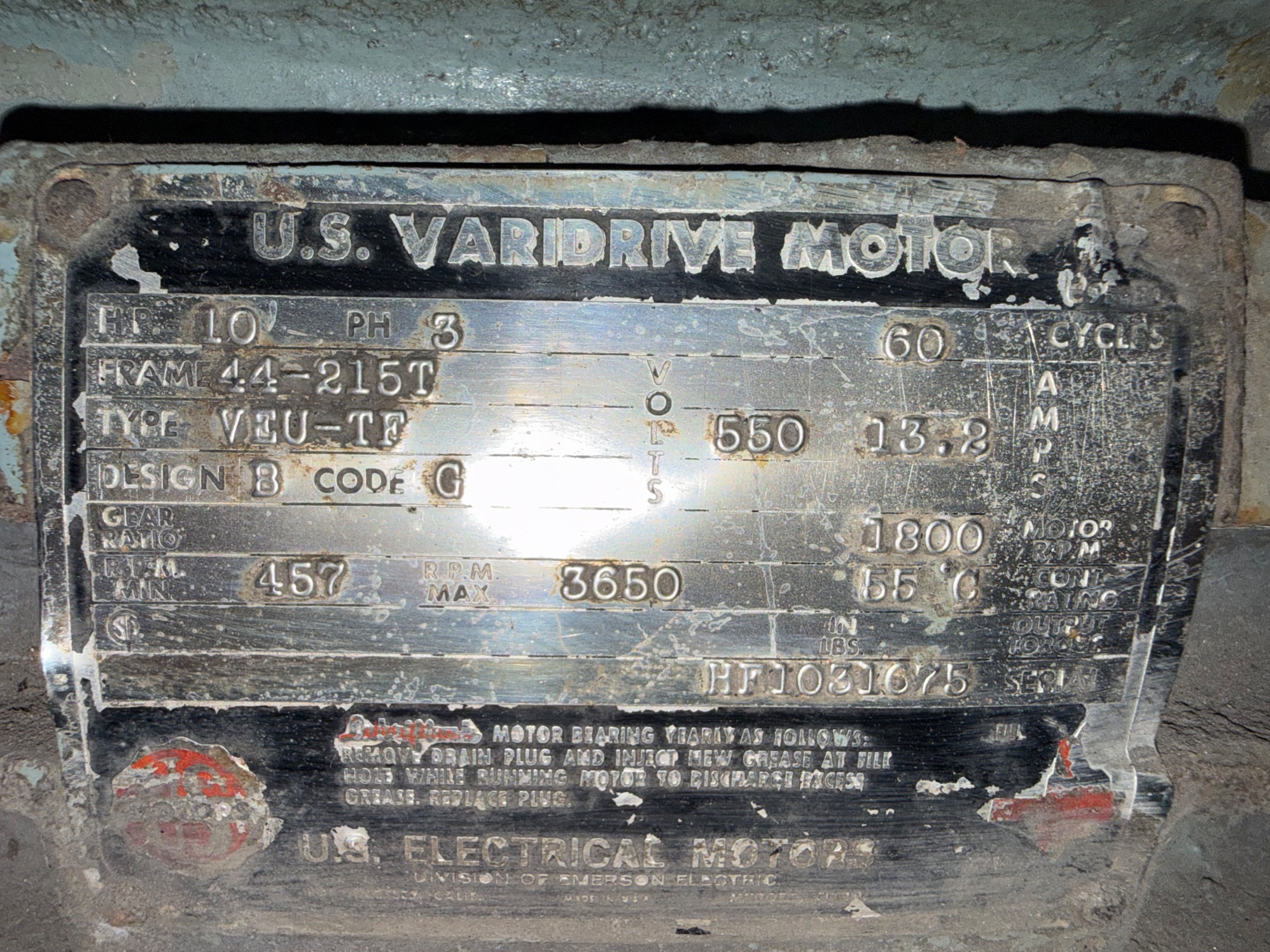 - U.S. VARIDRIVE 10 HP / 550 V / 60 HZ / 3 PH / 457/3650 RPM
