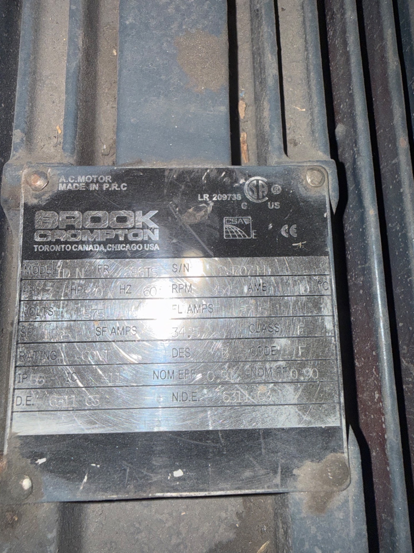 - BROOK CROMPTON 20 HP / 575 V / 60 HZ / 3 PH / 3545 RPM