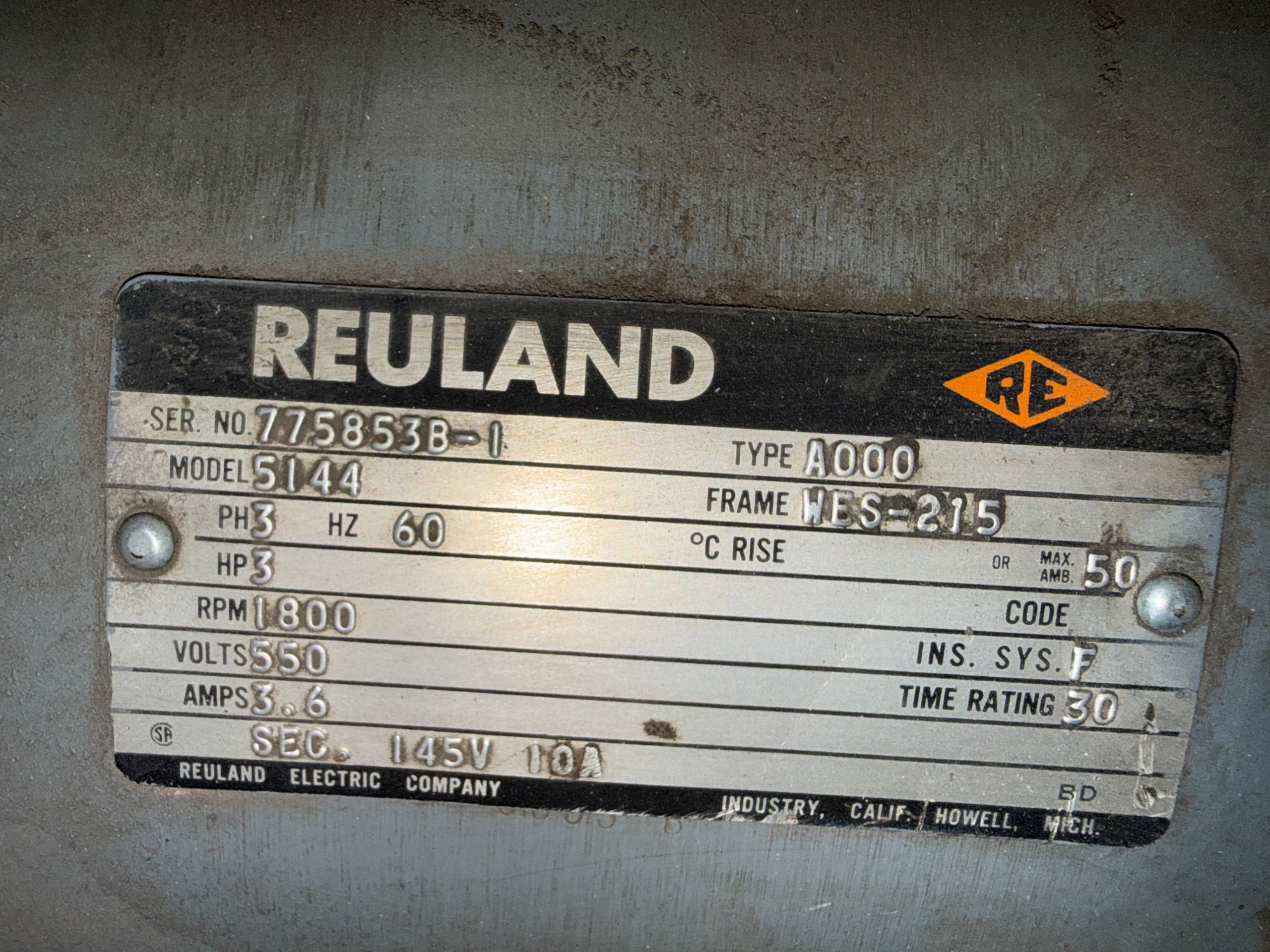 - REULAND 3 HP / 550 V / 60 HZ / 3 PH / 1800 RPM