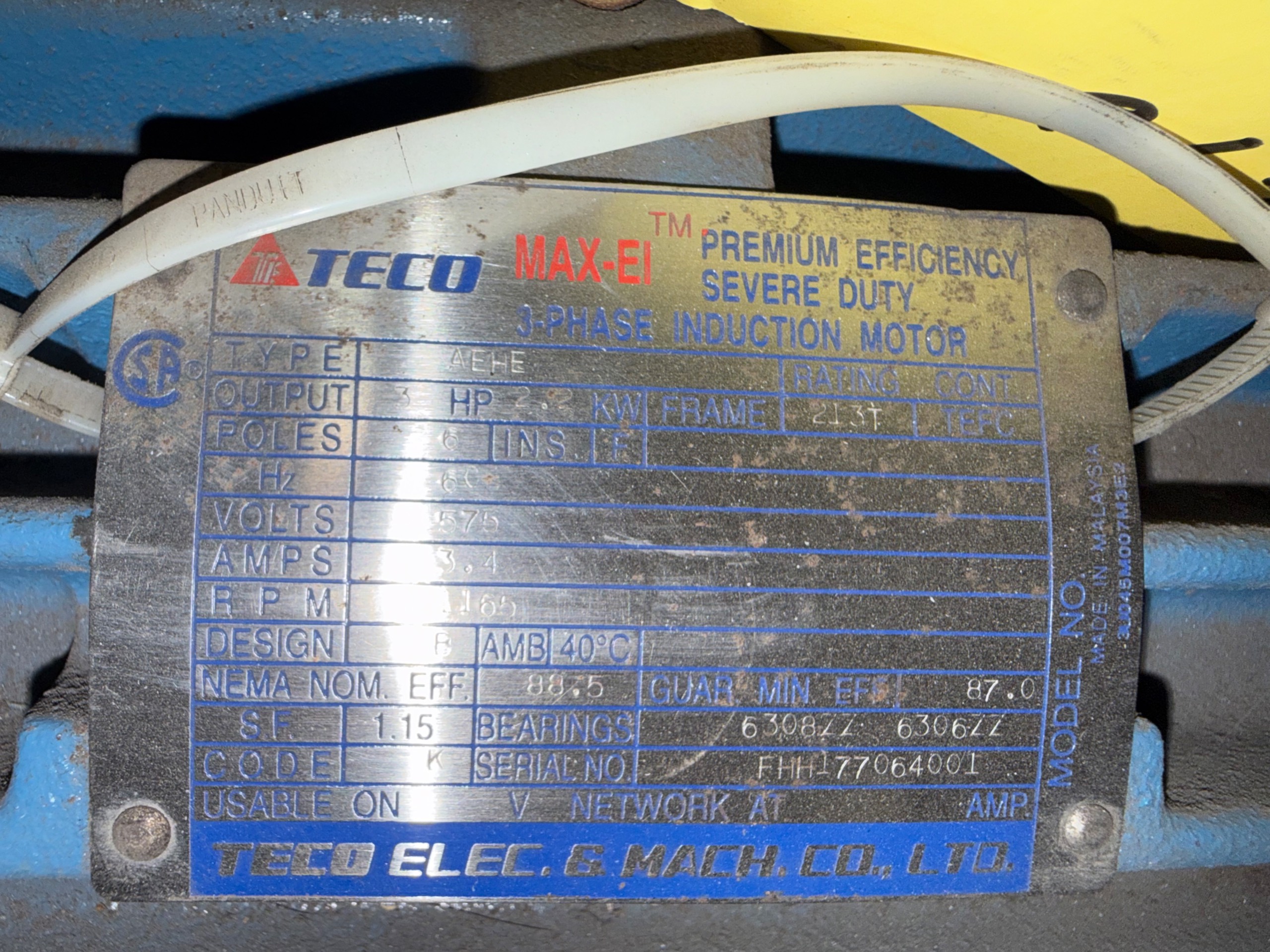 - TECO 3 HP / 575 V / 60 HZ / 1165 RPM