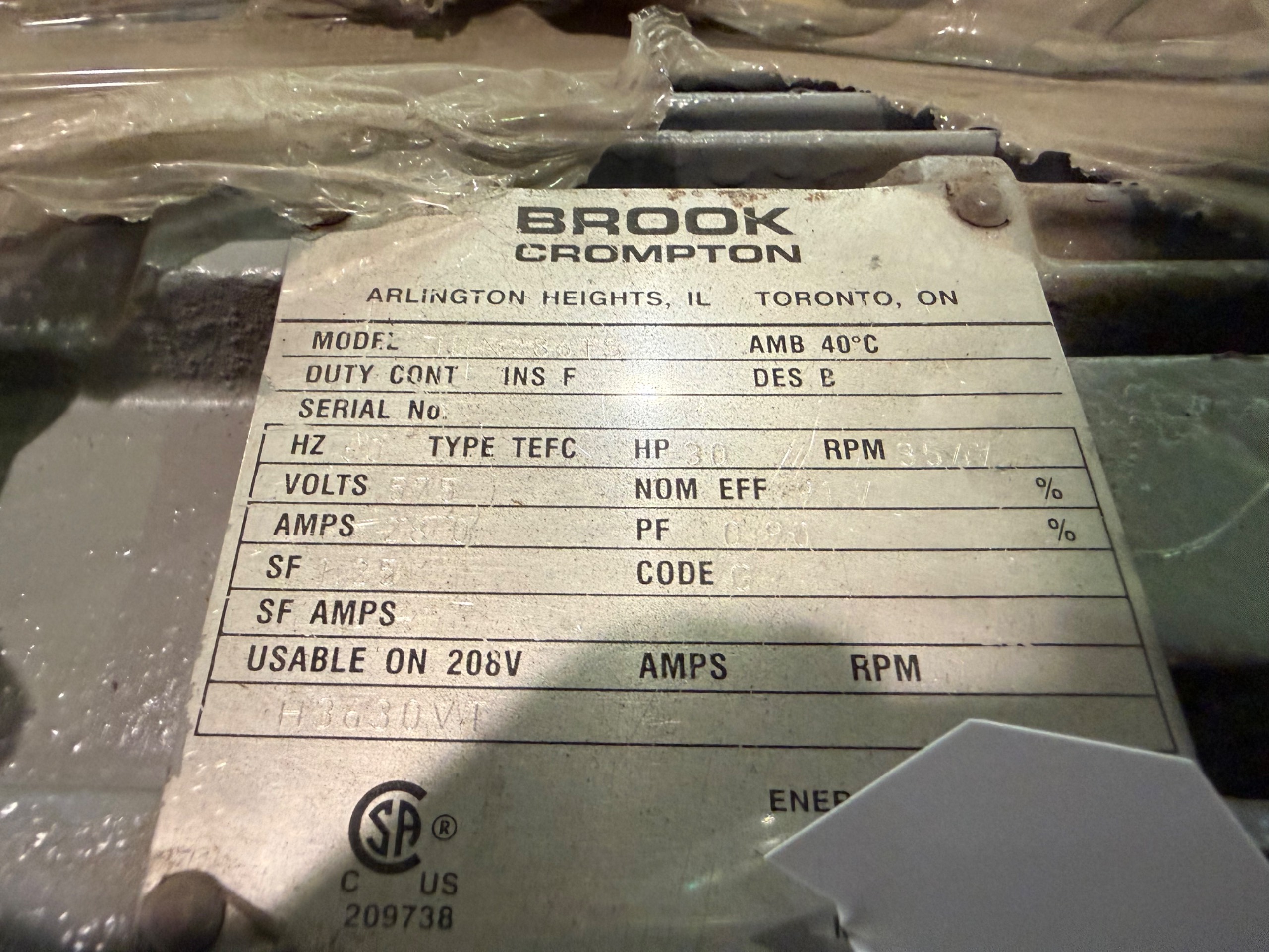 - BROOK CROMPTON 30 HP / 575 V / 60 HZ / 3550 RPM