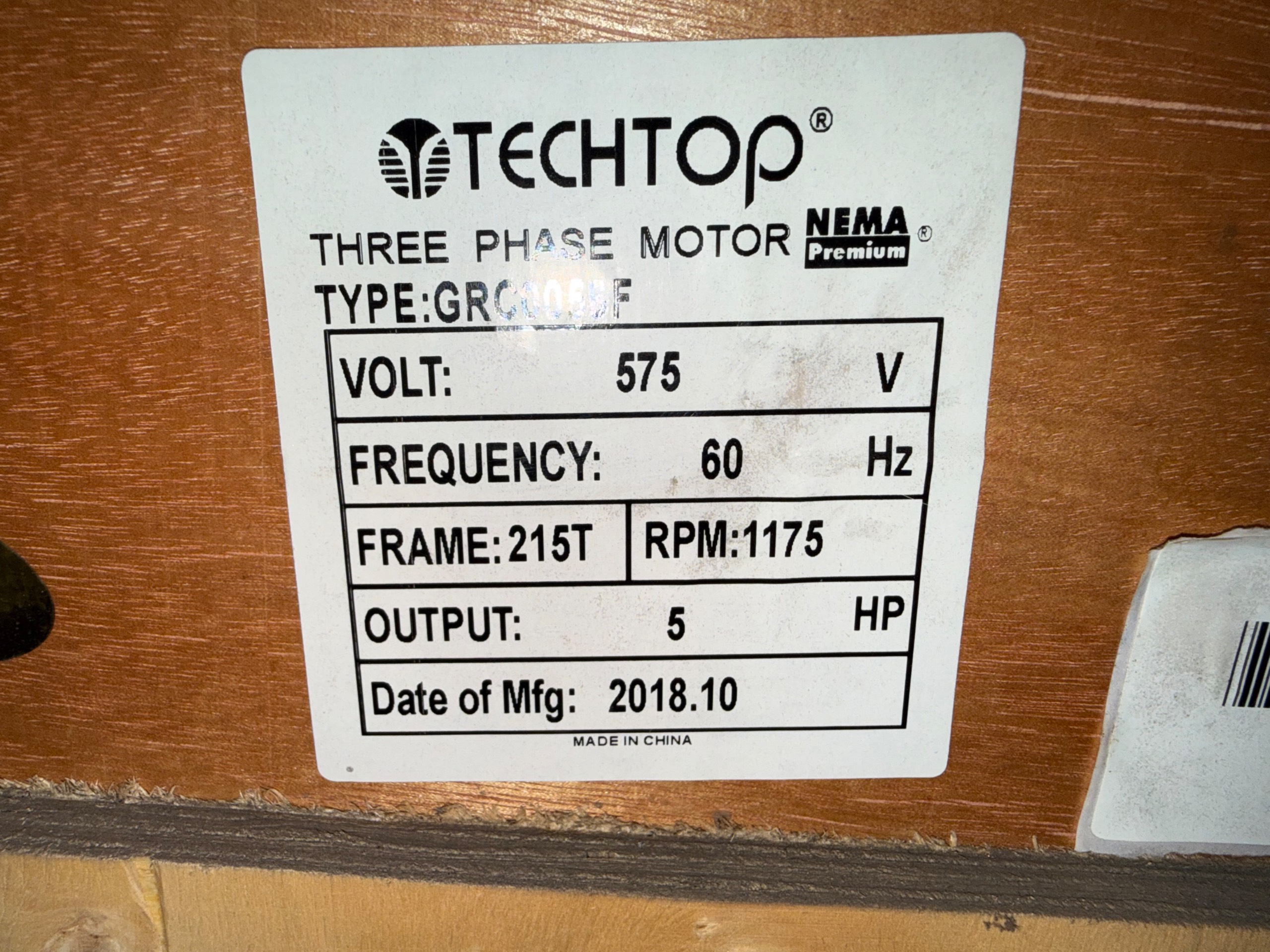 - TECHTOP 5 HP / 575 V / 60 HZ / 1175 RPM