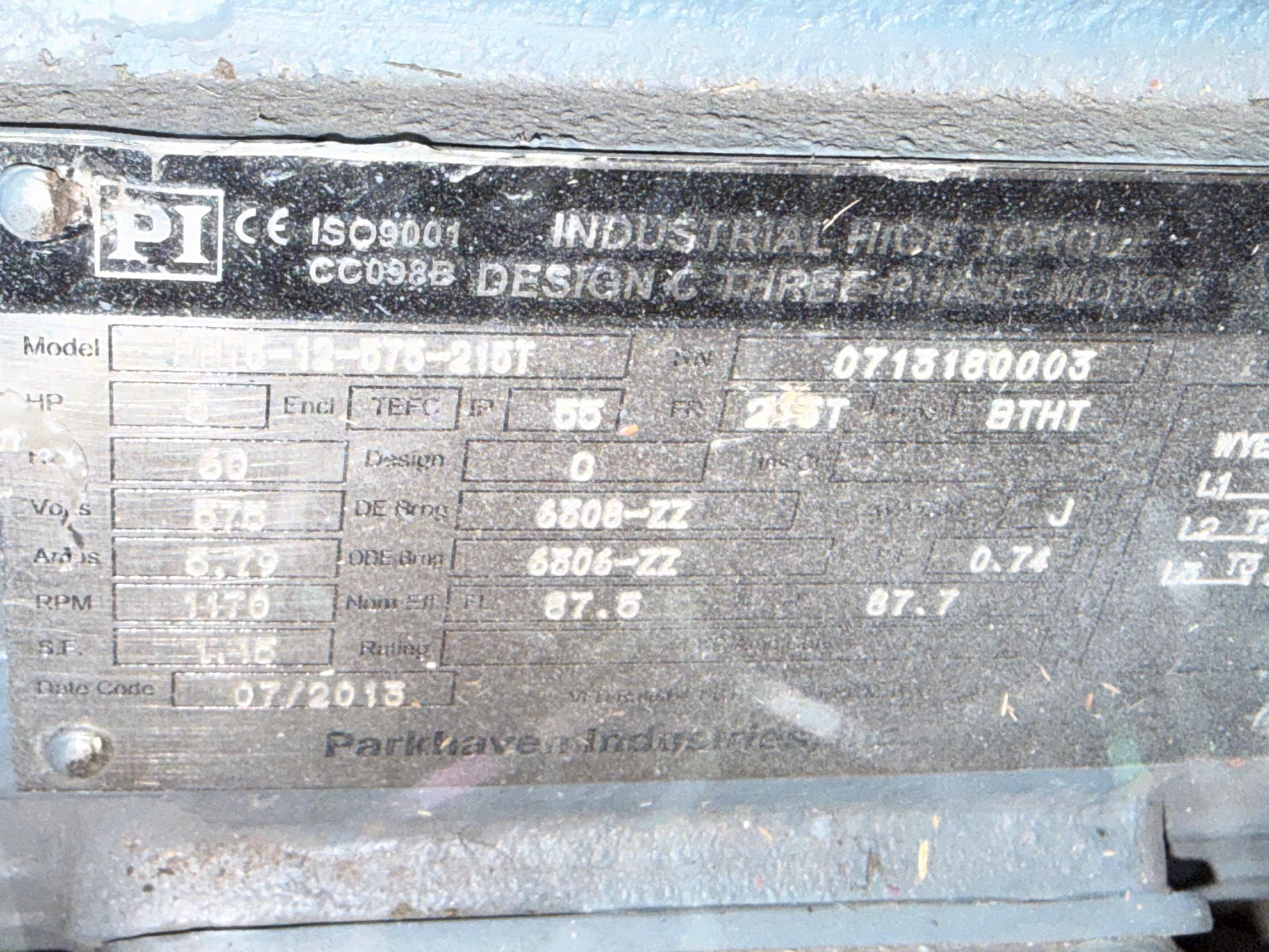 - PARKHAVEN INDUSTRIES 5 HP / 575 V / 60 HZ / 1170 RPM