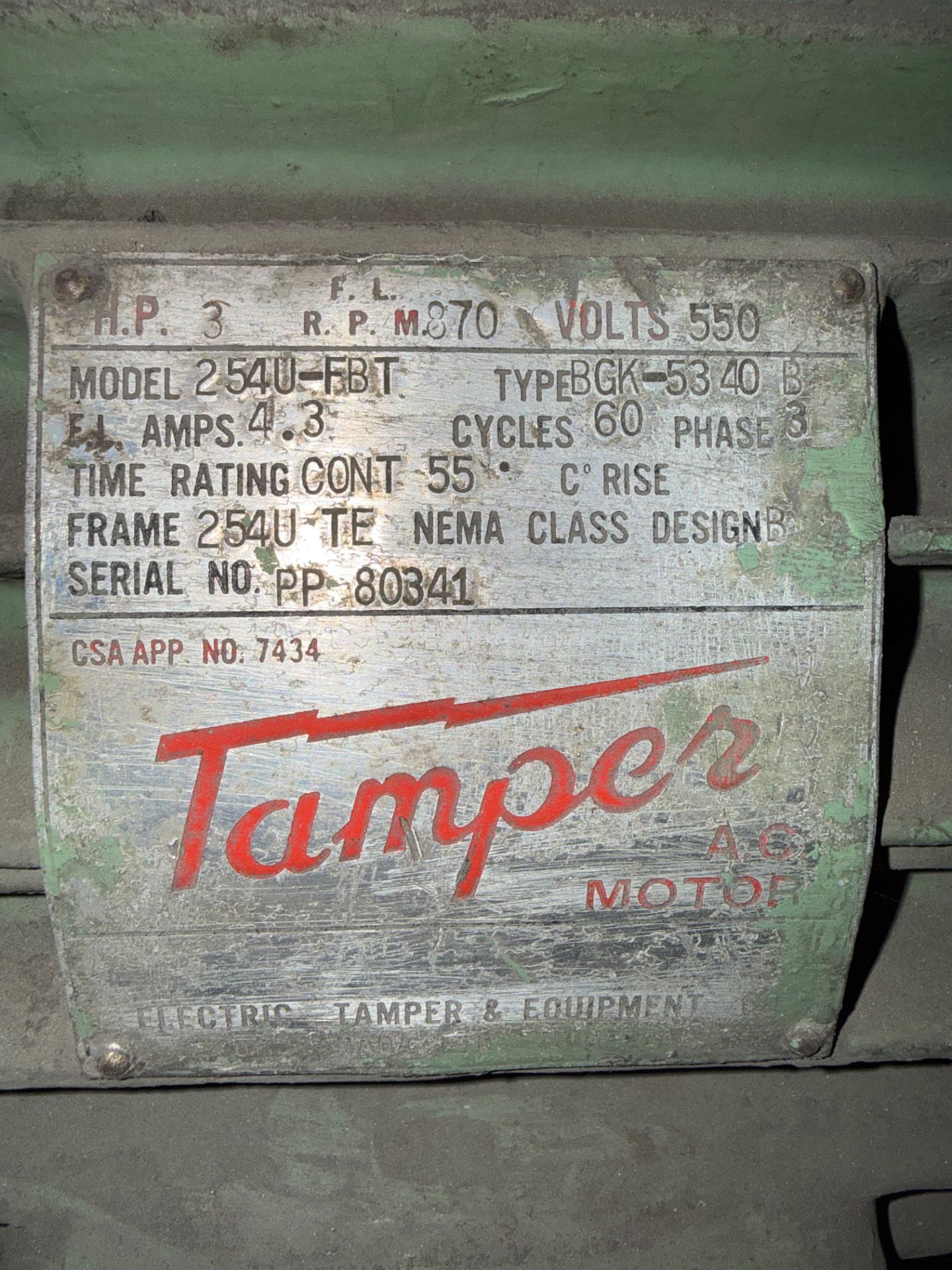 - TAMPER 3 HP / 550 V / 60 HZ / 3 PH / 870 RPM