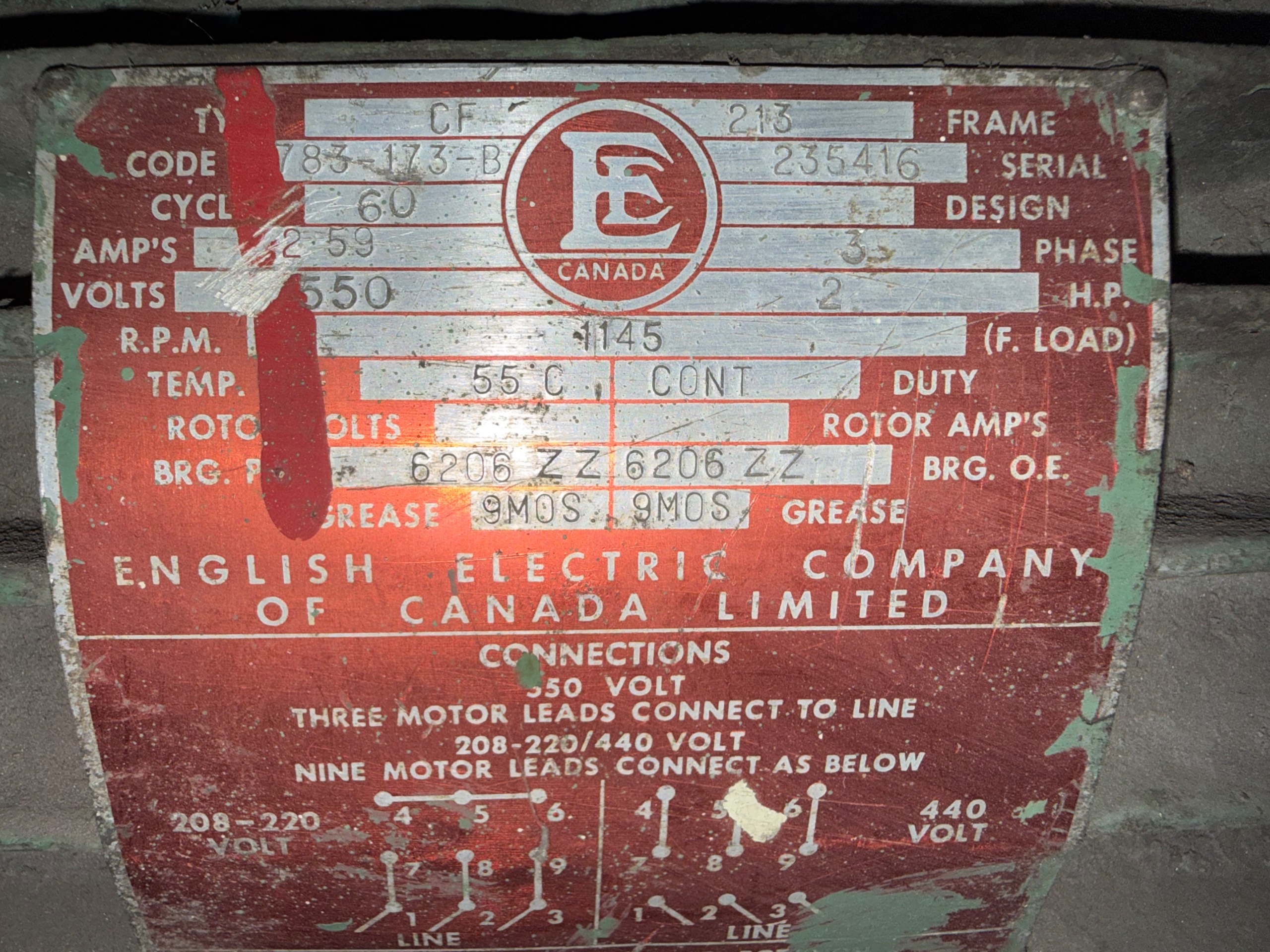 - ENGLISH ELECTRIC 2 HP / 550 V / 60 HZ / 3 PH / 1145 RPM