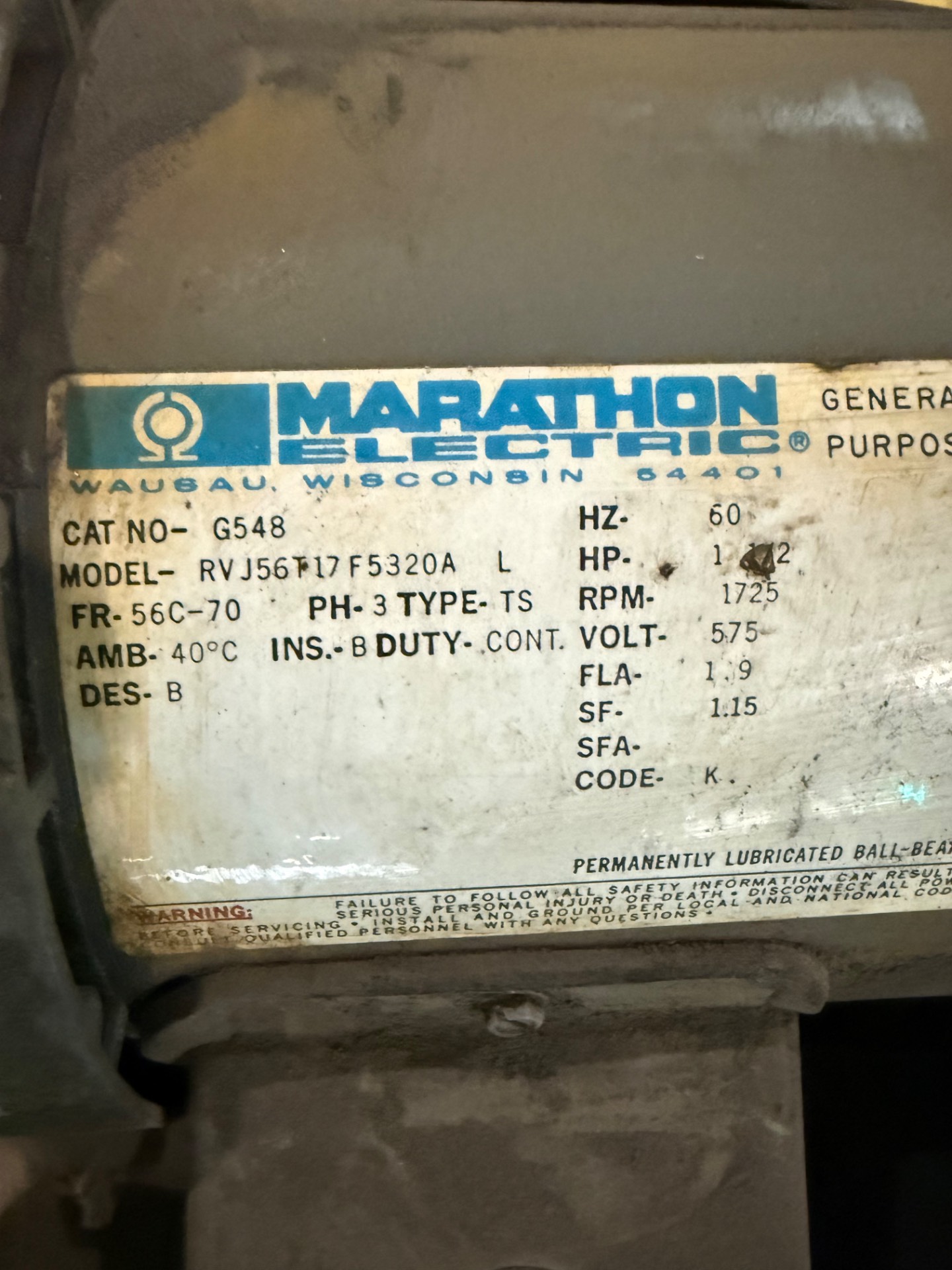 - MARATHON ELECTRIC 1/2 HP / 575 V / 60 HZ / 3 PH / 1725 RPM