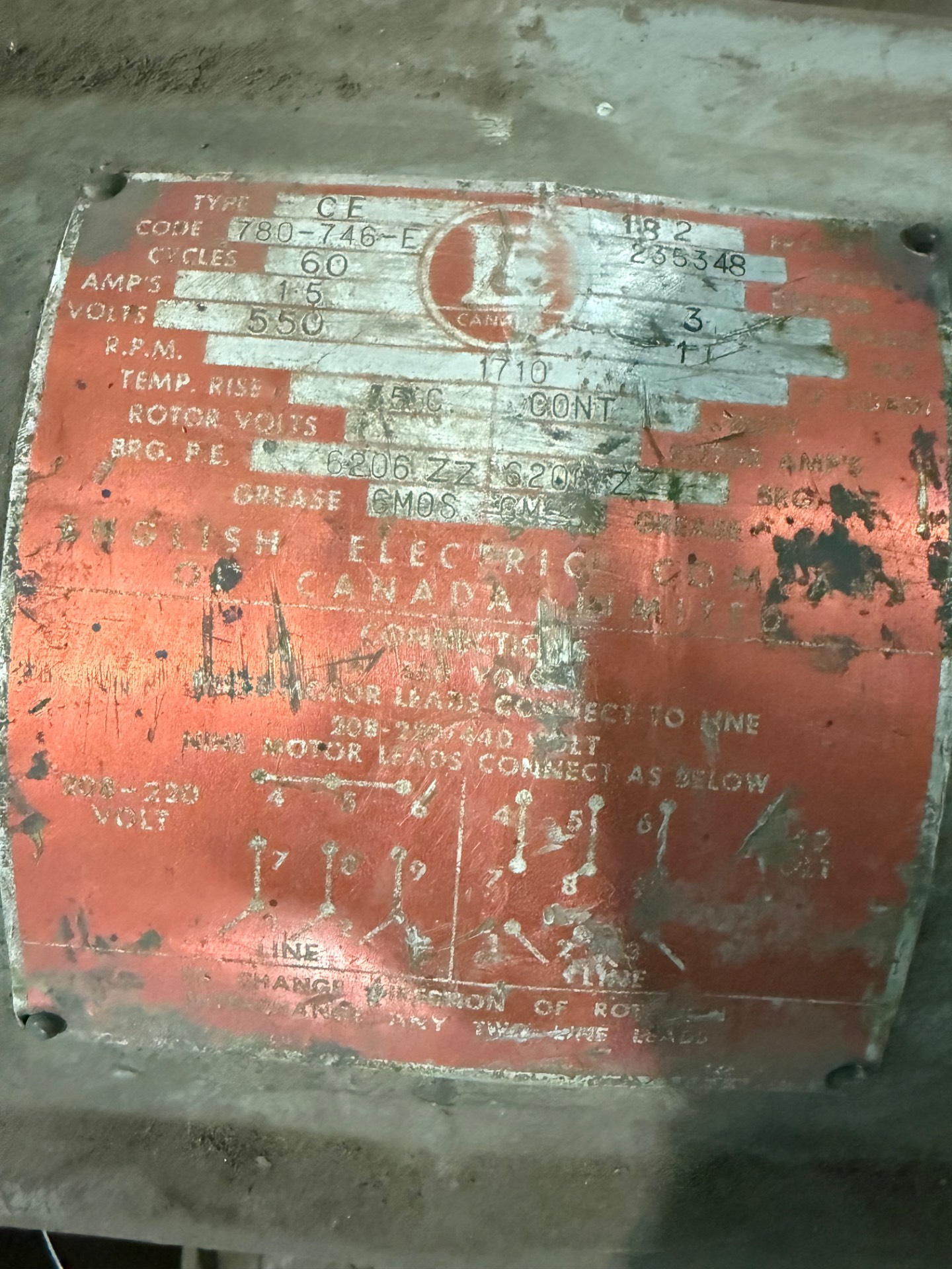 - ENGLISH ELECTRIC 1.5 HP / 550 V / 60 HZ / 3 PH / 1710 RPM