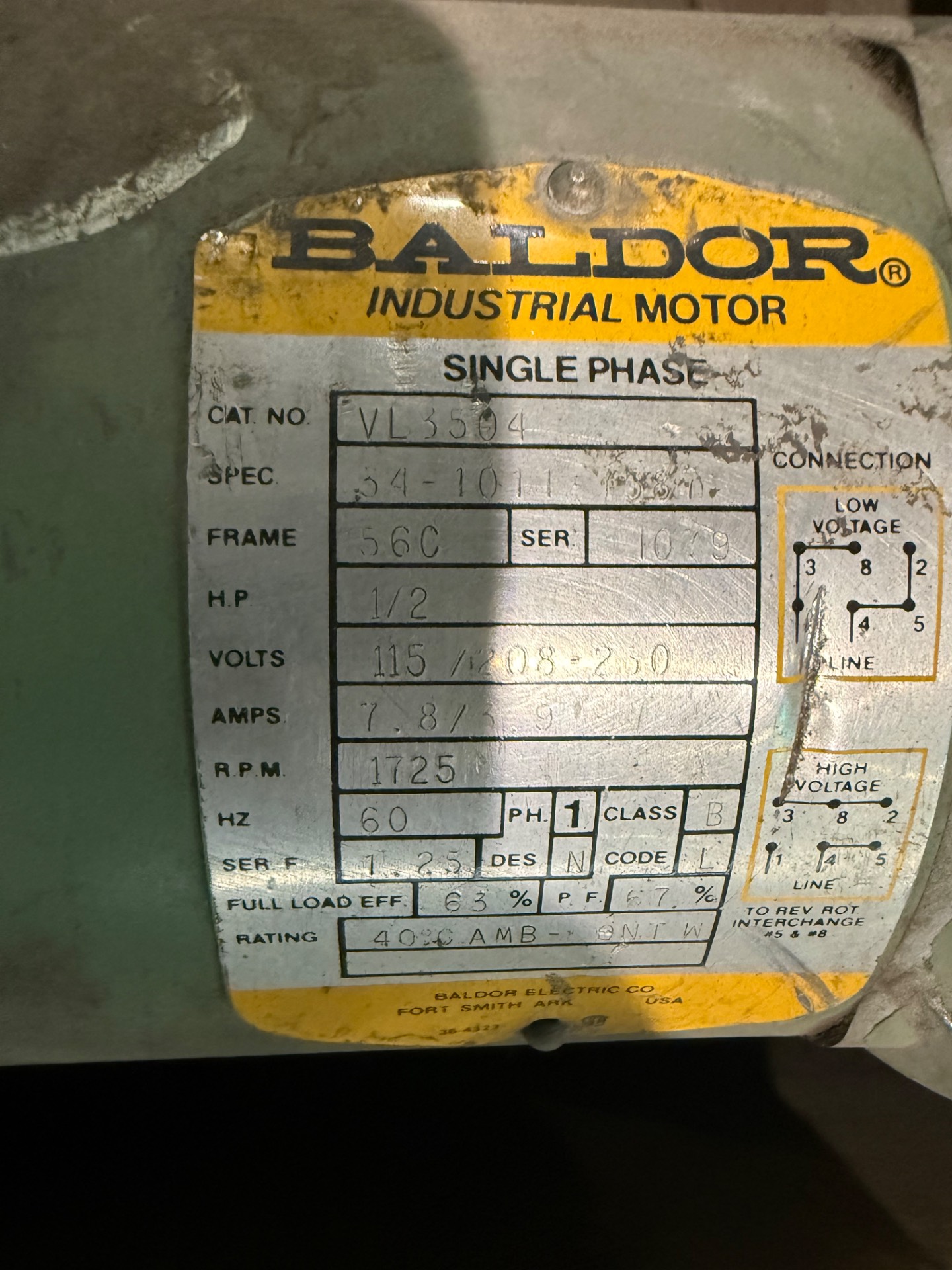 - BALDOR 1/2 HP / 115/208-230 V / 60 HZ / 1 PH / 1725 RPM