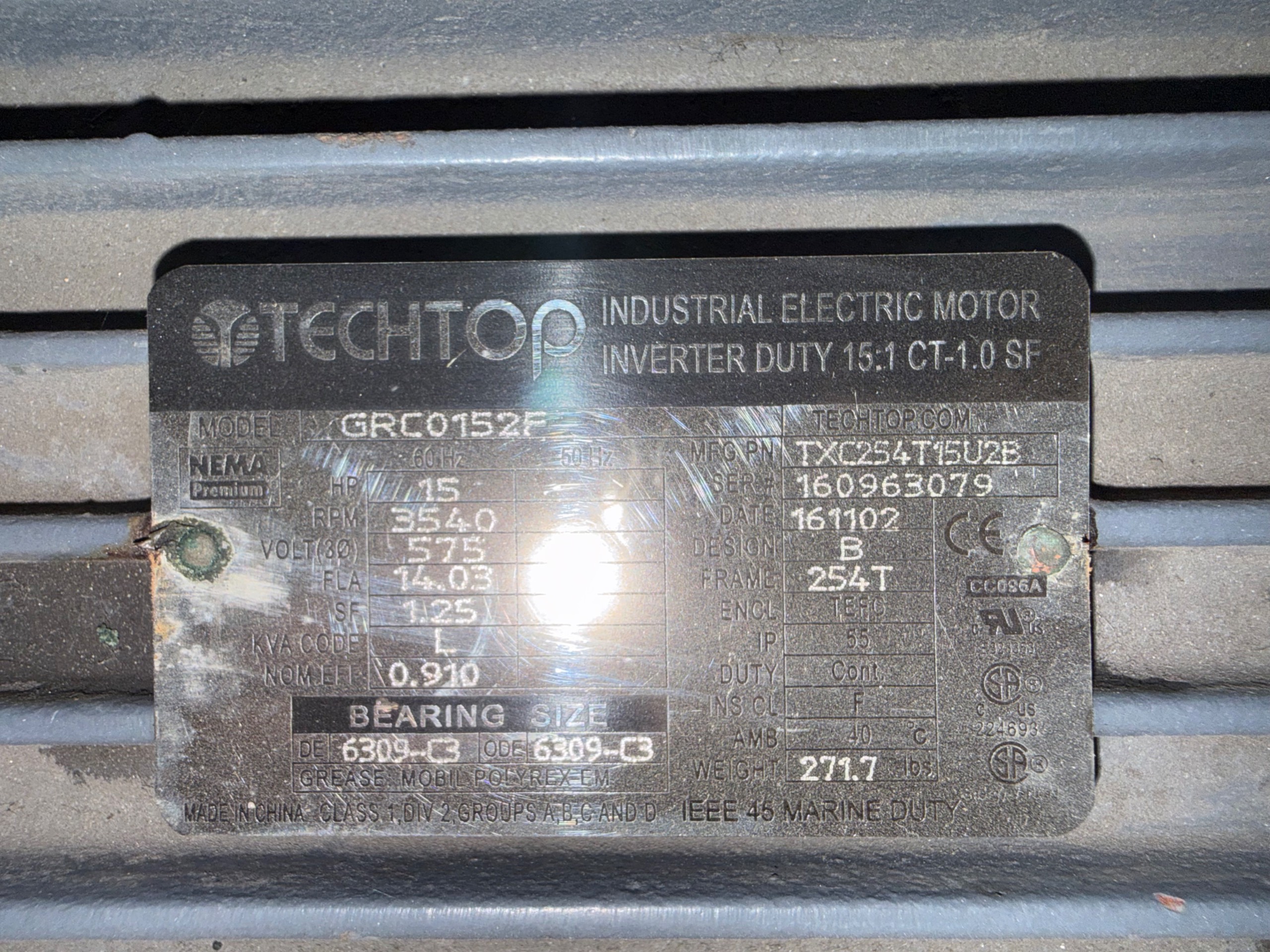 - TECHTOP 15 HP / 575 V / 60 HZ / 3540 RPM