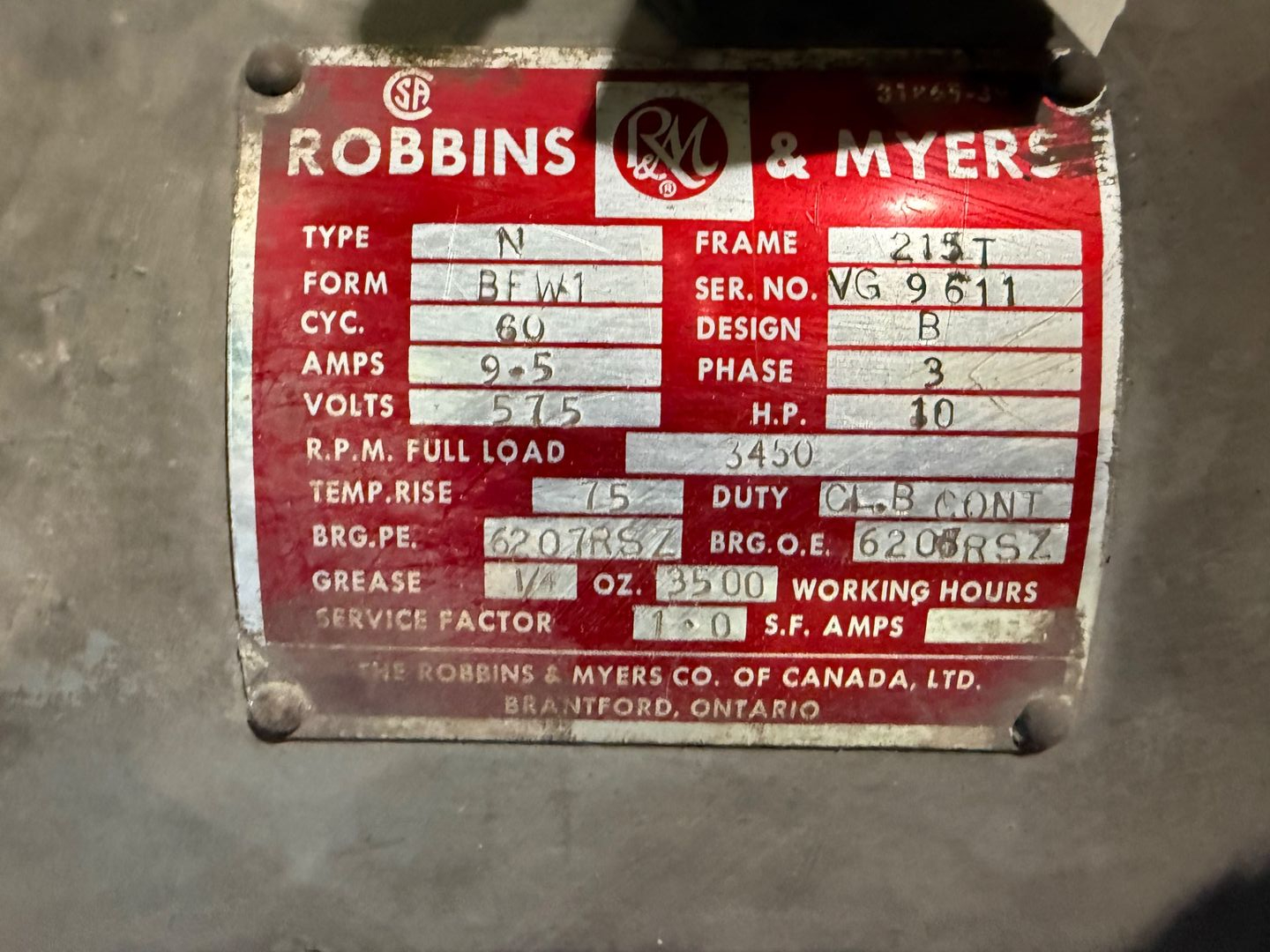 - ROBBINS & MYERS 10 HP / 575 V / 60 HZ / 3 PH / 3450 RPM