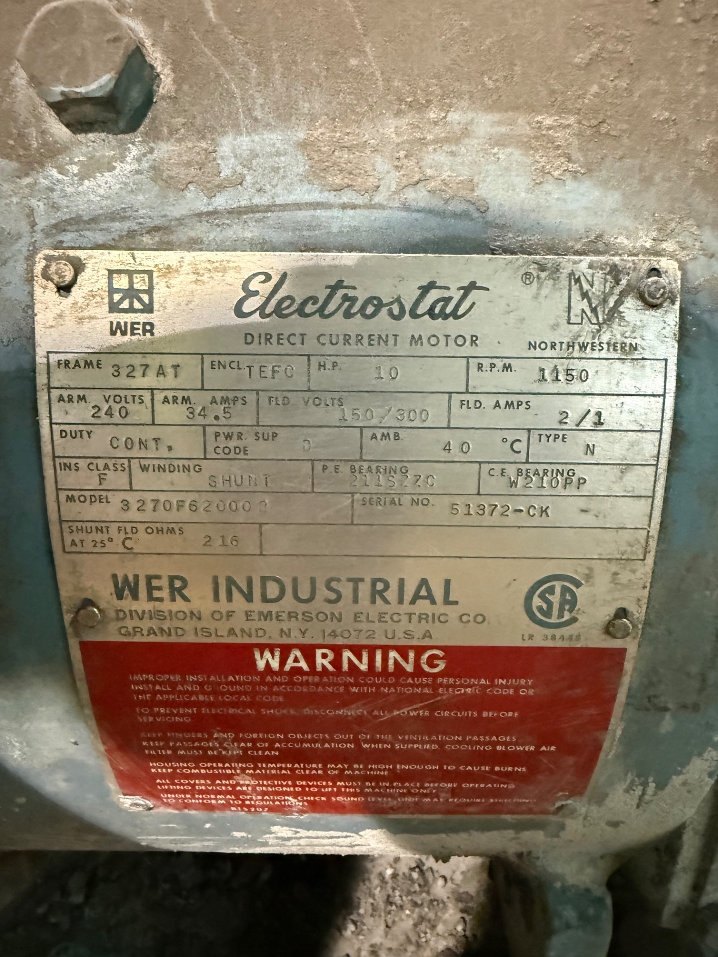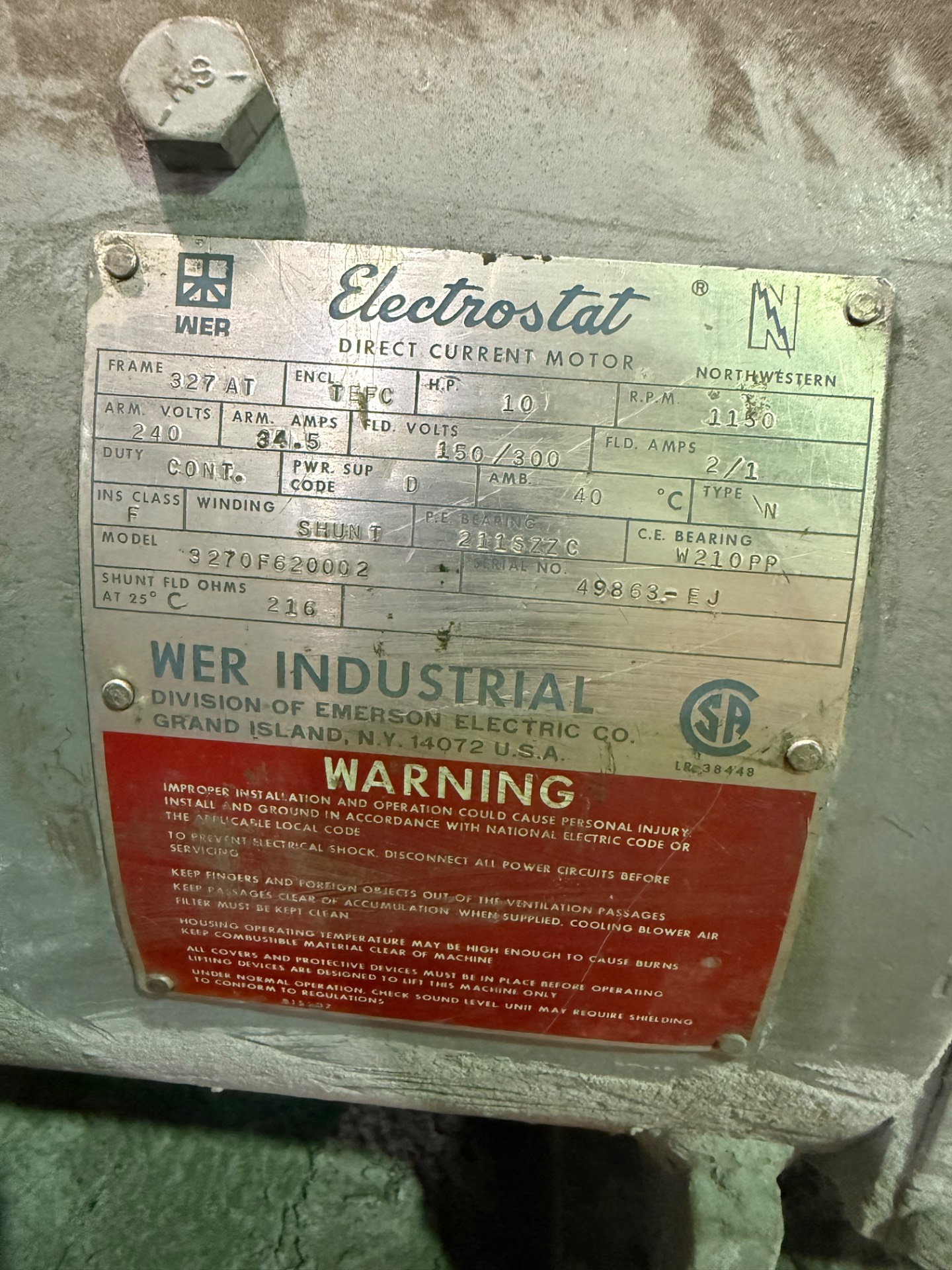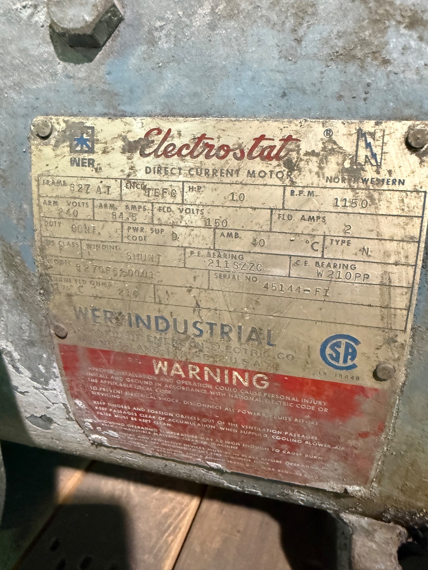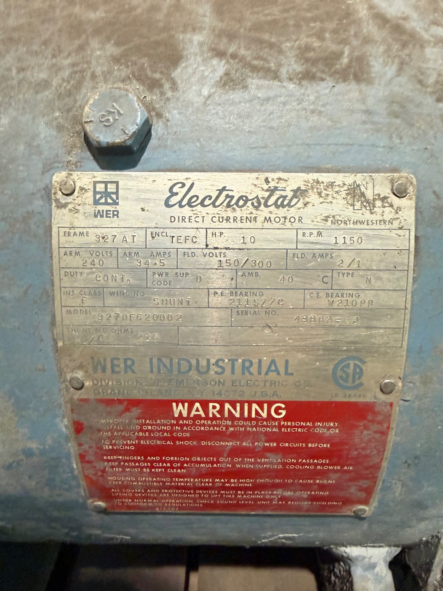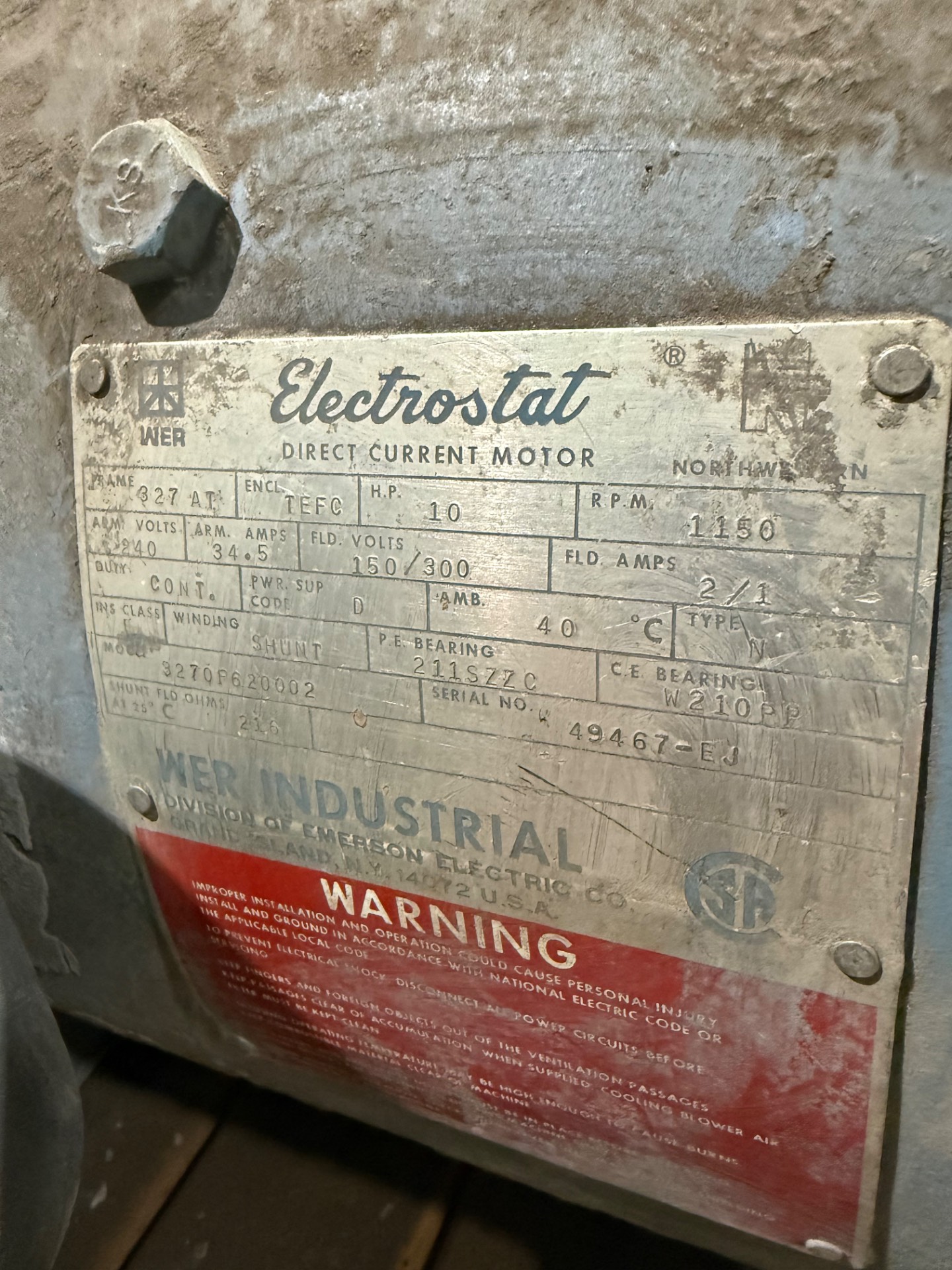 - ELECTROSTAT 10 HP / 240 V / 1150 RPM