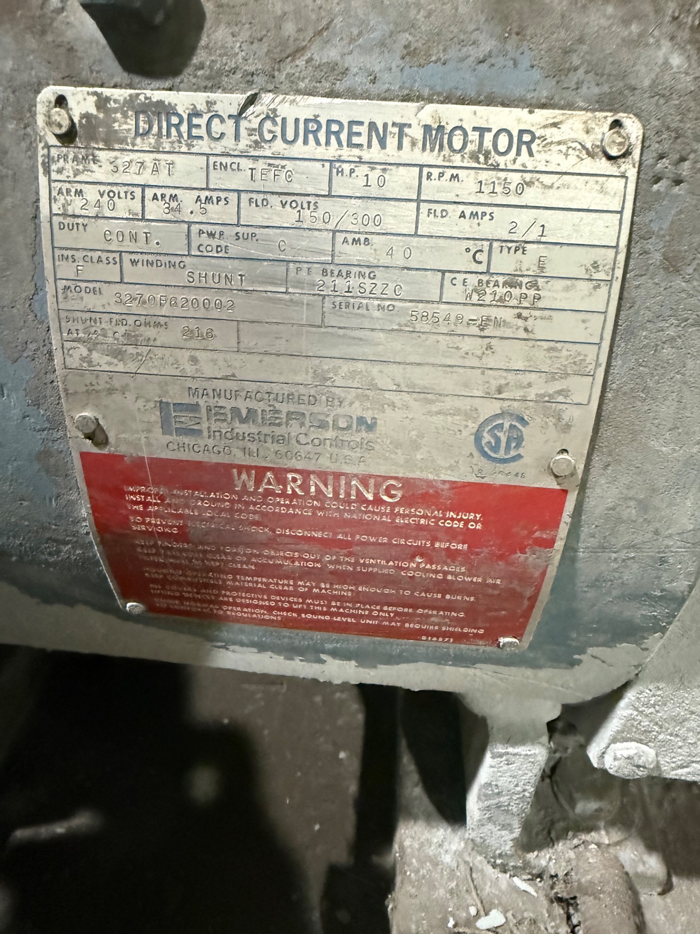 - EMERSON 10 HP / 240 V / 1150 RPM