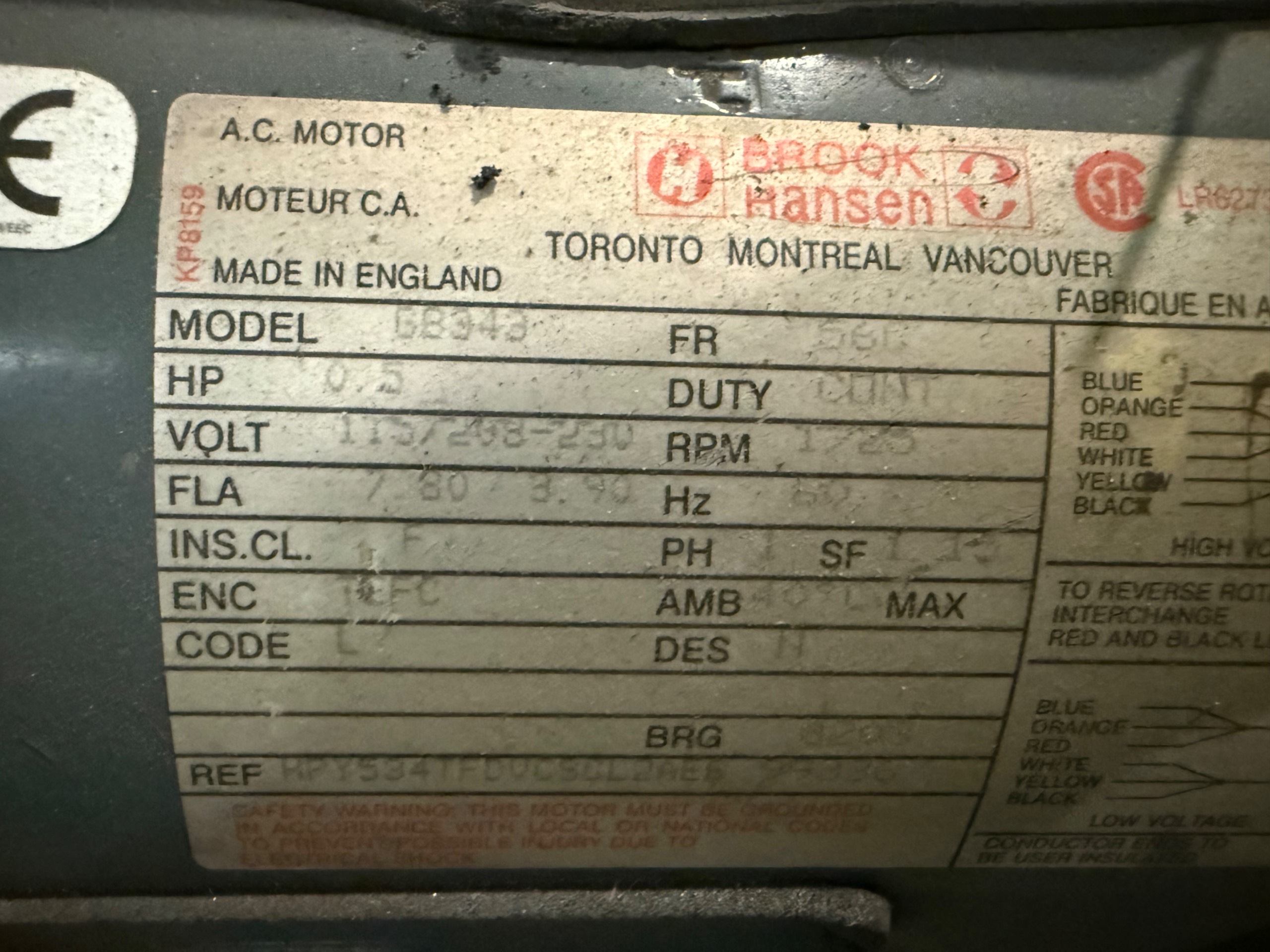 - BROOK HANSEN 0.5 HP / 115/208-230 V / 60 HZ / 1725 RPM