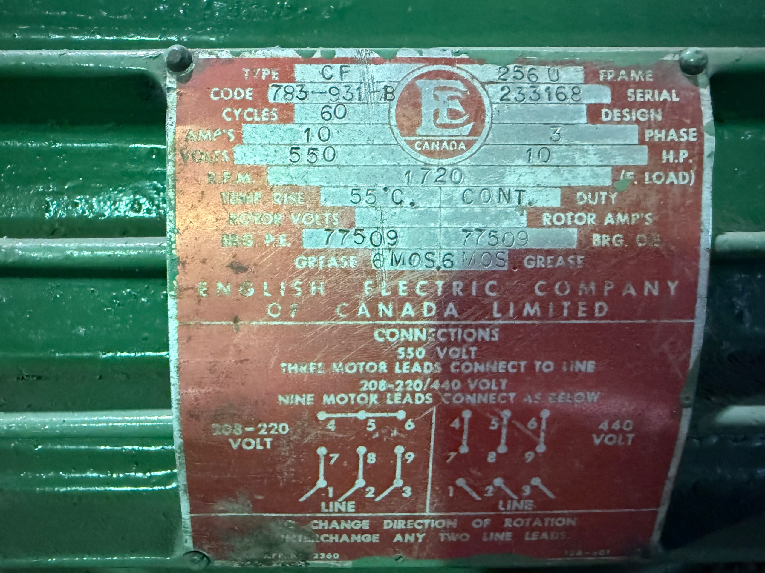 - ENGLISH ELECTRIC 10 HP / 550 V / 60 HZ / 3 PH / 1720 RPM