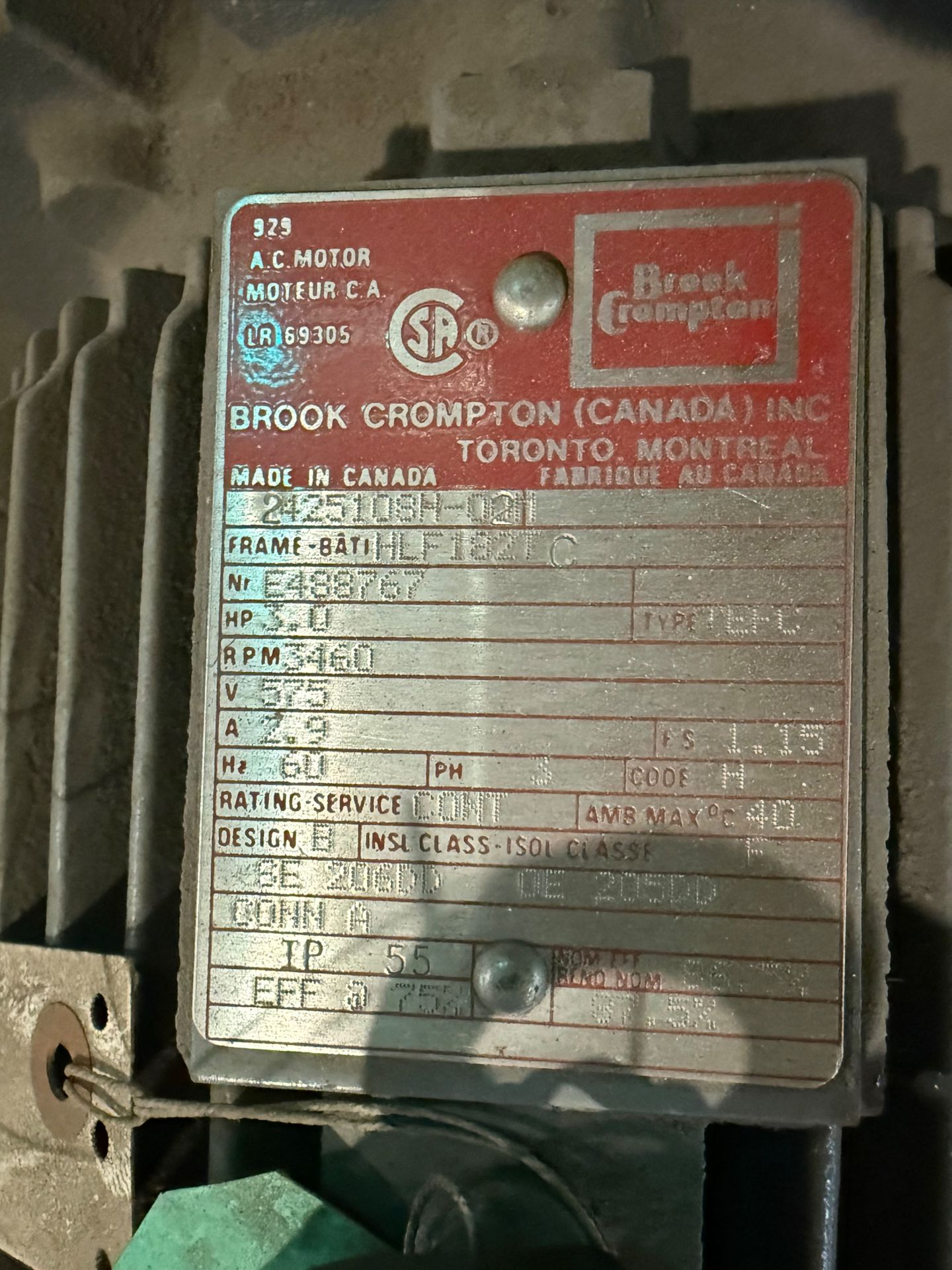 - BROOK CROMPTON 3 HP / 575 V / 60 HZ / 3 PH / 3460 RPM