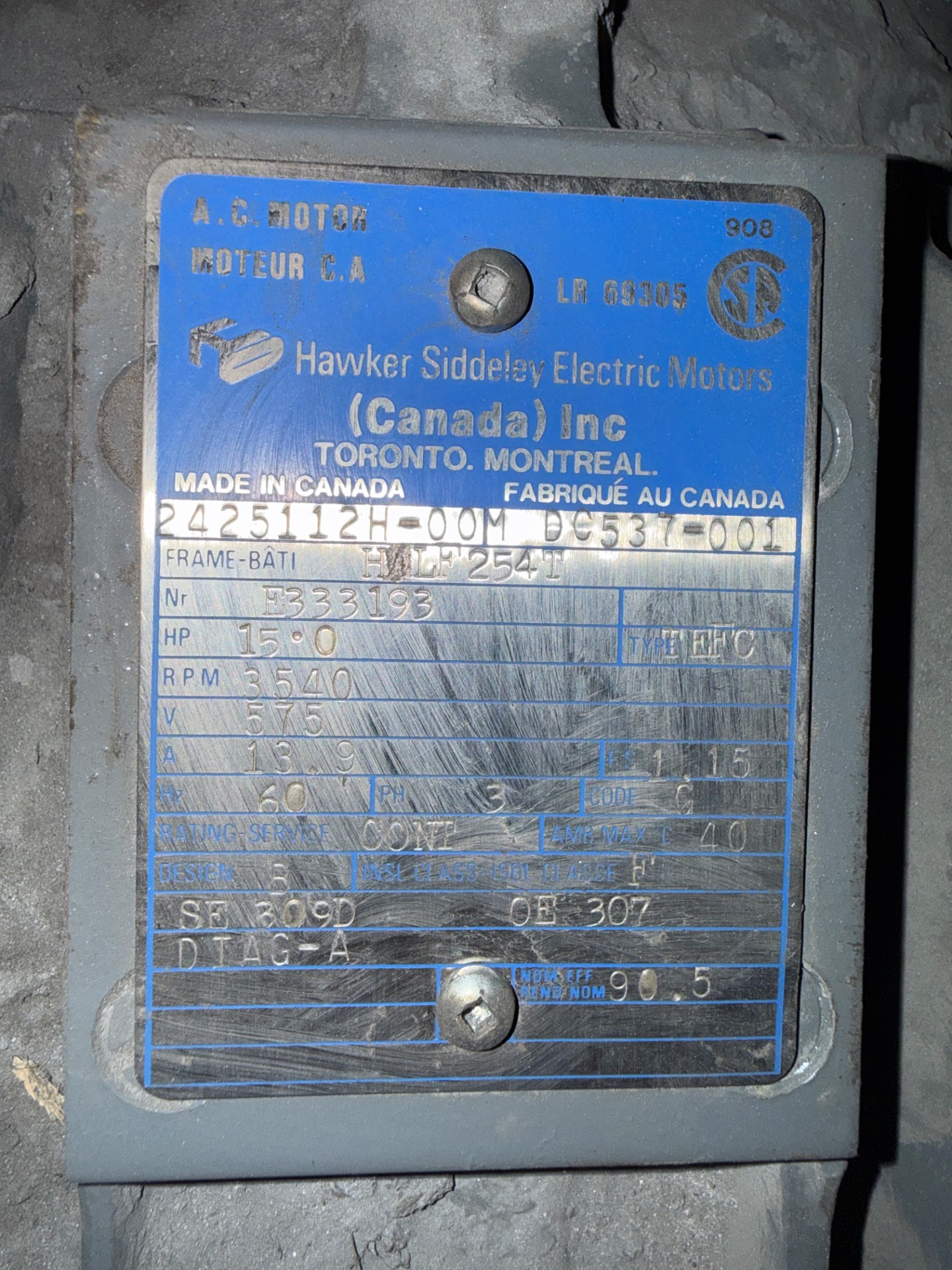- HAWKER SIDDELEY 15.0 HP / 575 V / 60 HZ / 3 PH / 3540 RPM