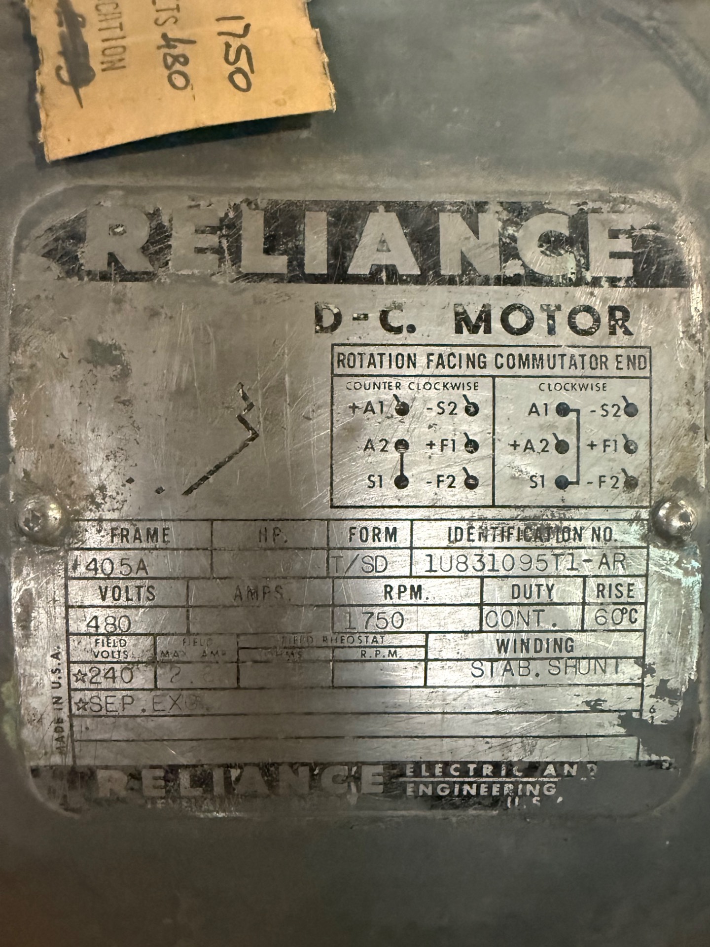 - RELIANCE 480 V / 1750 RPM