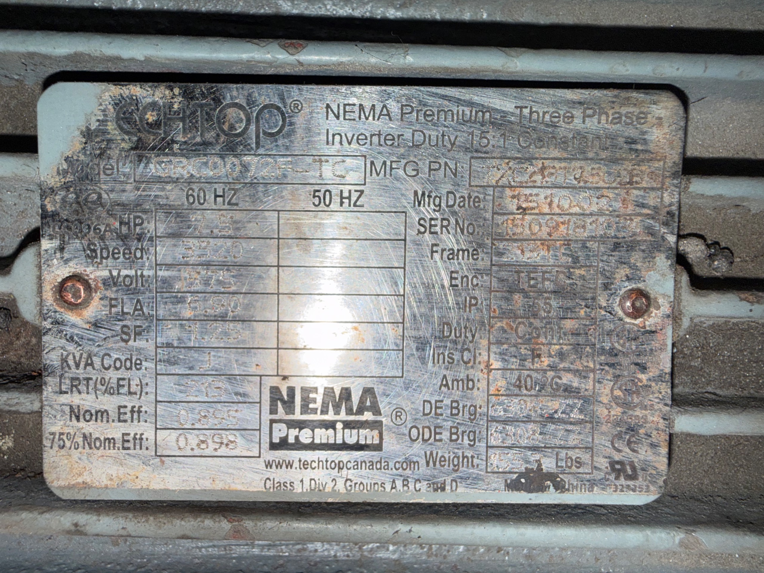- TECHTOP 7.5 HP / 575 V / 60 HZ / 3 PH / 3520 RPM