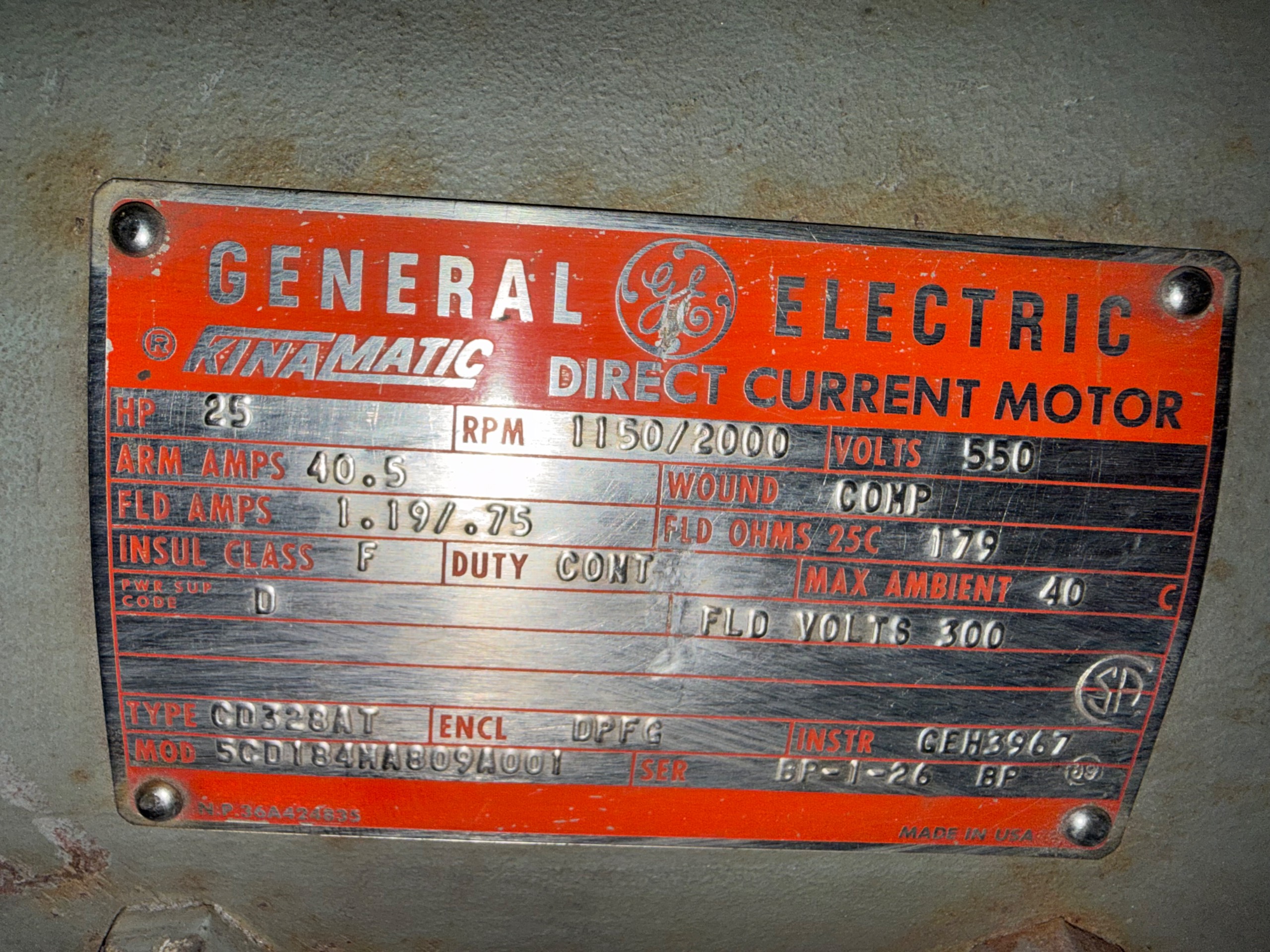 -GENERAL ELECTRIC 25 HP / 550 V / 1150/2000 RPM