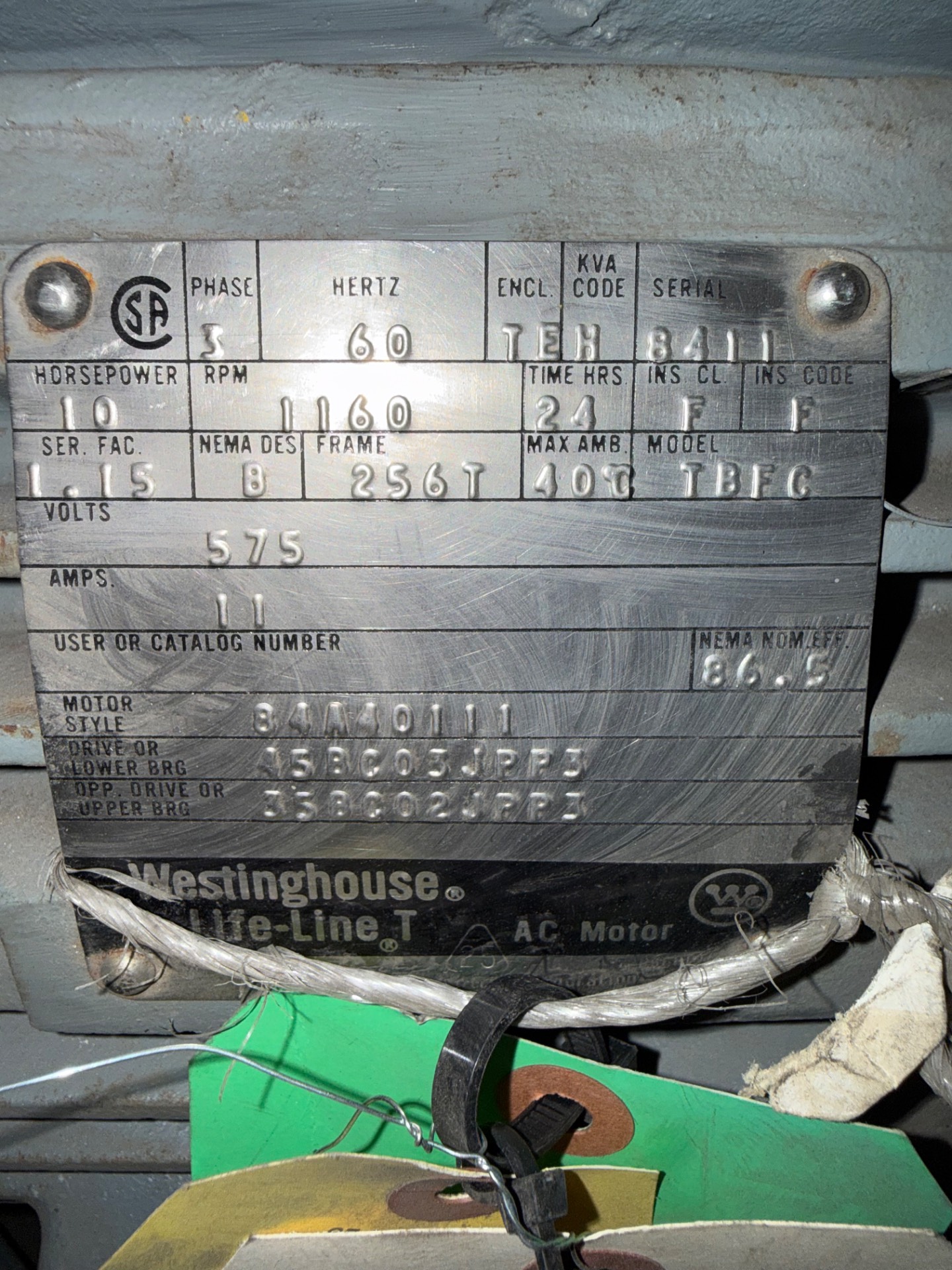 - WESTINGHOUSE 10 HP / 575 V / 60 HZ / 3 PH / 1160 RPM