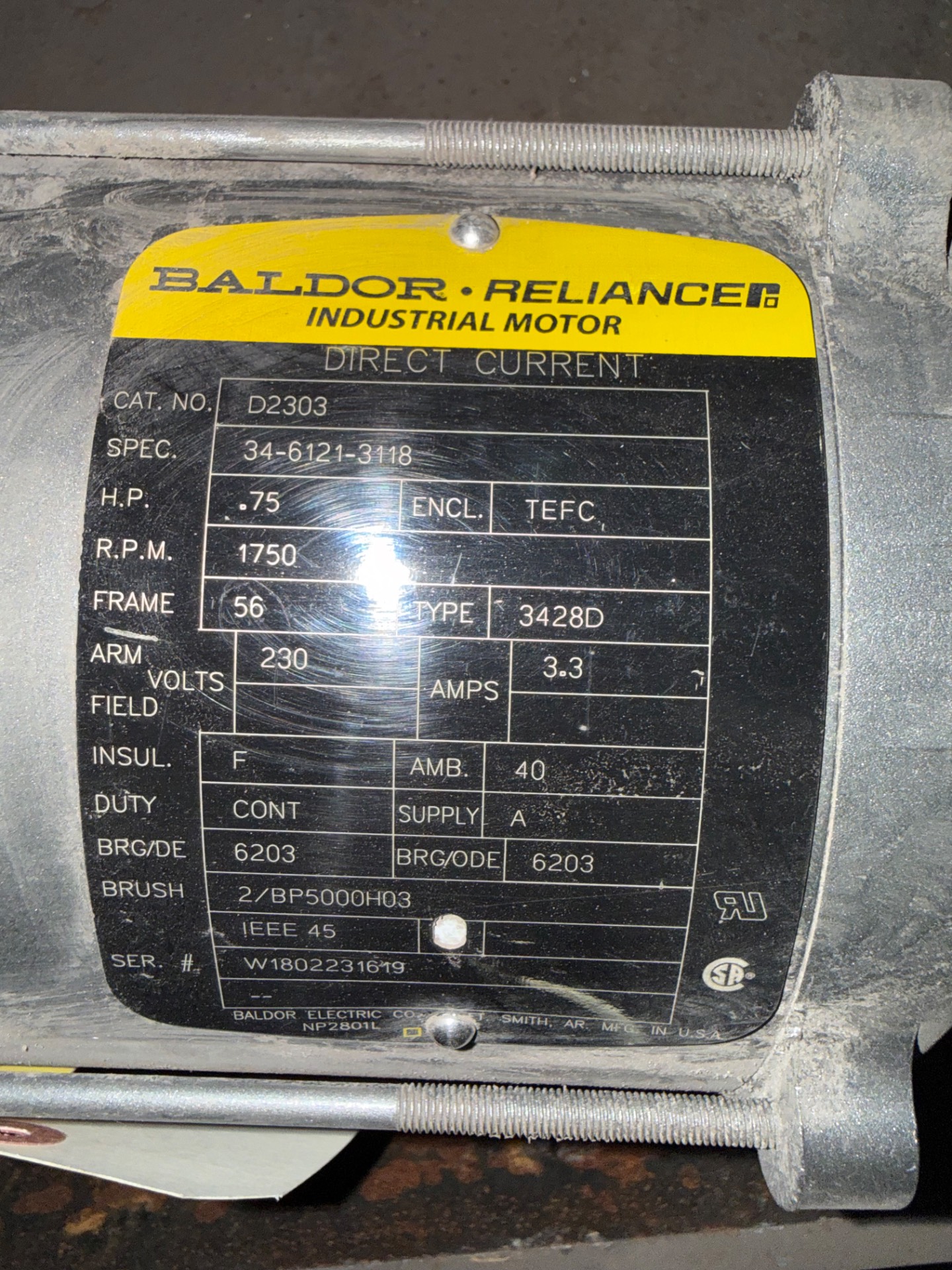 - BALDOR RELIANCE .75 HP / 230 V / 1750 RPM