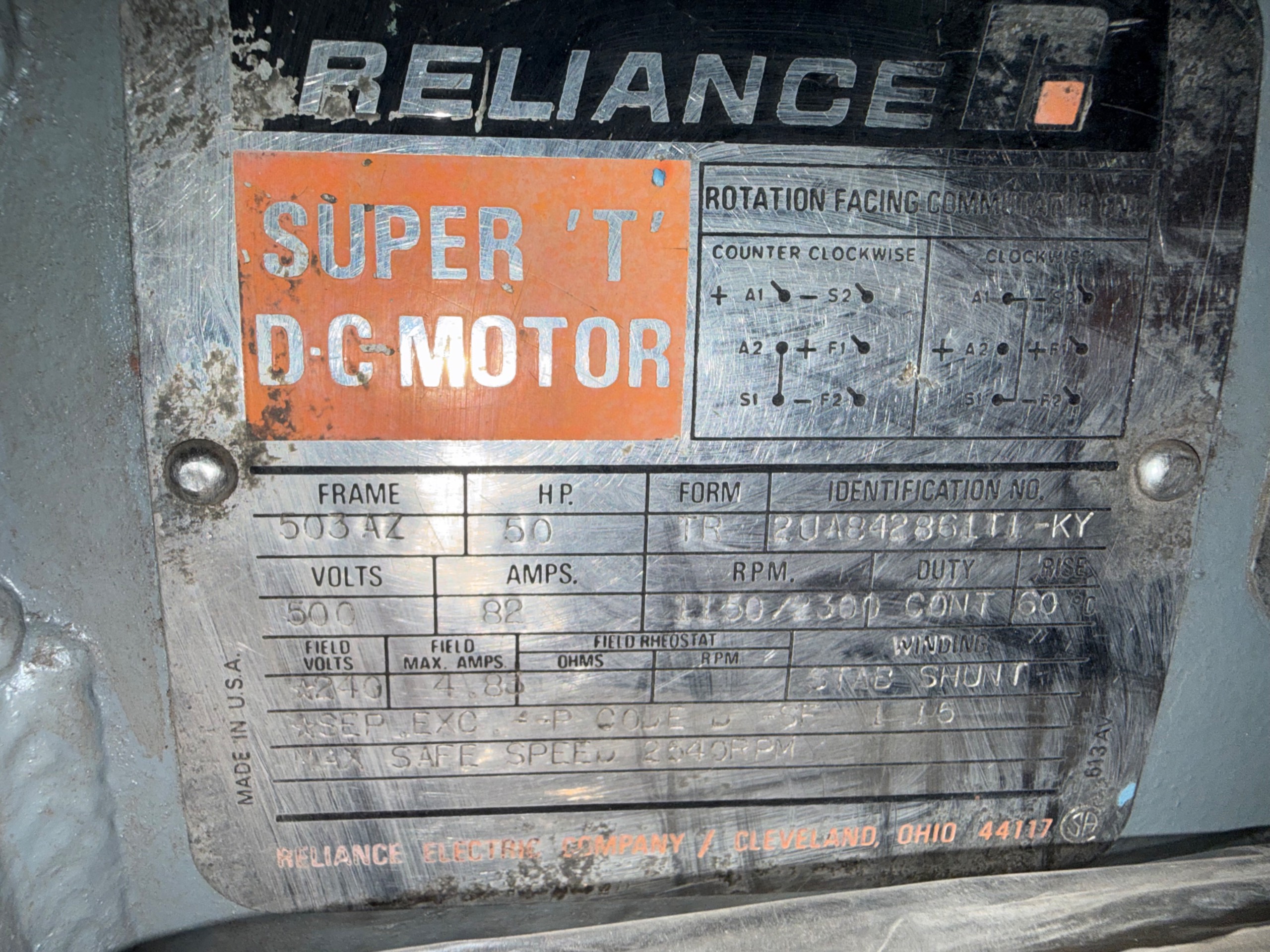 - RELIANCE 50 HP / 500 V / 1150/2300 RPM