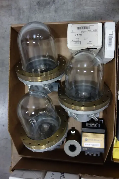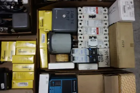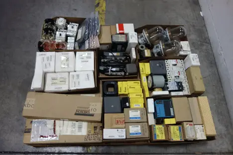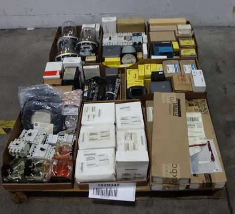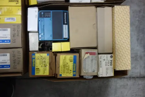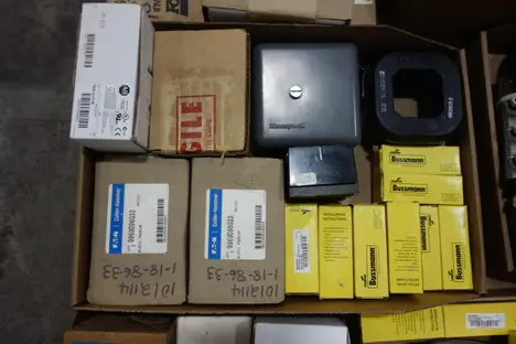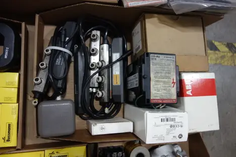 1 PALLET OF ASSORTED ELECTRICAL - TANK OBSERVATION , VOLTAGE TRANSFORMER, AC TO DC POWER SUPPLIES, CIRCUIT BREAKER, RELAYS, CONTACTOR PARTS AND ACCESSORIES,FUSE REDUCER, FLEXITEST TEST PLUG, LIGHT MODULES, CORDSET CABLES - ABB, FOXBORO, YASKAWA , GENERAL ELECTRIC , ALLEN BRADLEY