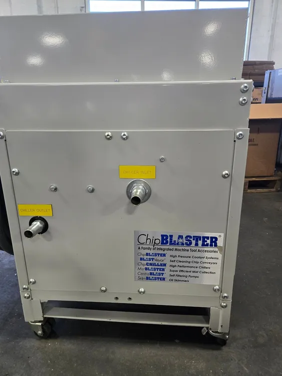 THE CHIPBLASTER MODEL SACC IS A HIGH-PERFORMANCE COOLANT CHILLER AND FILTRATION SYSTEM DESIGNED FOR CNC APPLICATIONS. THIS CHIPCHILLER UNIT OFFERS A COOLING CAPACITY OF 2.83 TONS, WHICH EQUATES TO 34,000 BTU. THE SYSTEM INCORPORATES TEMPERATURE CONTROL AND FEATURES A CARTRIDGE FILTER STYLE FOR EFFICIENT COOLANT FILTRATION. THE MAIN UNIT'S APPROXIMATE WEIGHT IS 609 LBS, AND ITS DIMENSIONS MEASURE 20 INCHES BY 44.4 INCHES BY 42 INCHES. IT IS ELECTRICALLY RATED FOR 230 VOLTS AT 60 CYCLE AND UTILIZES R134A AS ITS REFRIGERANT TYPE. A PDF MANUAL IS INCLUDED WITH THE SYSTEM.