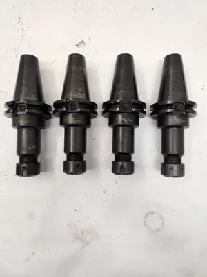THIS ITEM IS A SET OF FOUR COMMAND CAT-40 ER-20 COLLET CHUCKS, MODEL CAT 40, DESIGNED FOR MILL TOOLING. MANUFACTURED FROM STEEL, THESE CHUCKS FEATURE A CAT40 SPINDLE TYPE AND INCLUDE COOLANT THROUGH CAPABILITY. EACH CHUCK HAS A 4-INCH PROJECTION LENGTH. THE TOTAL SET WEIGHT IS 4.00 LBS.