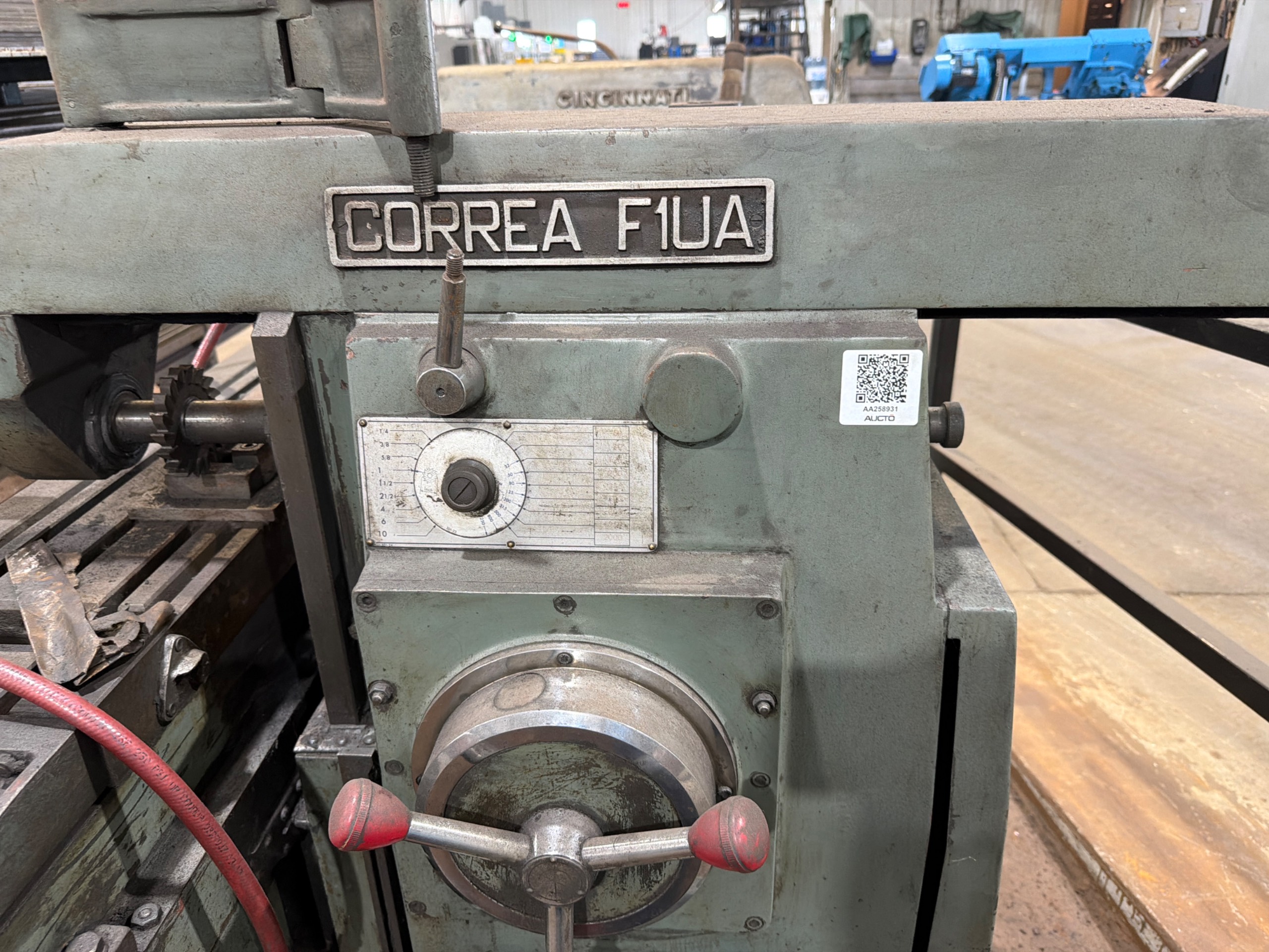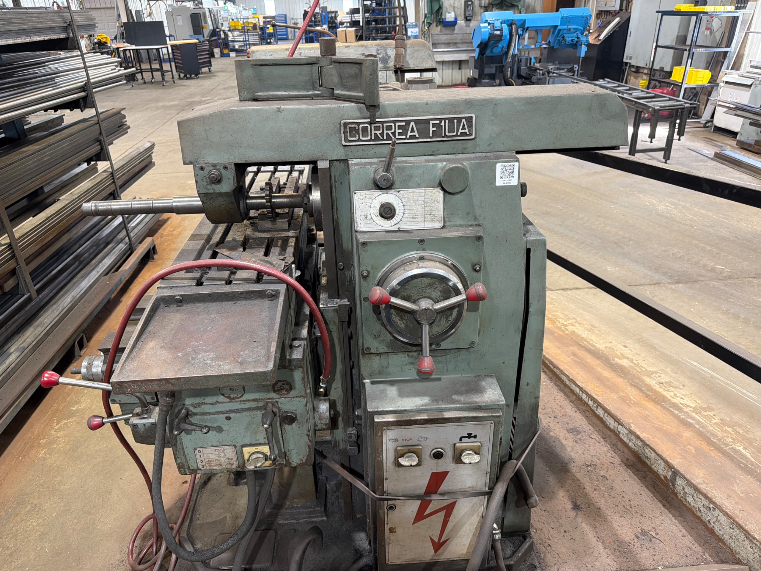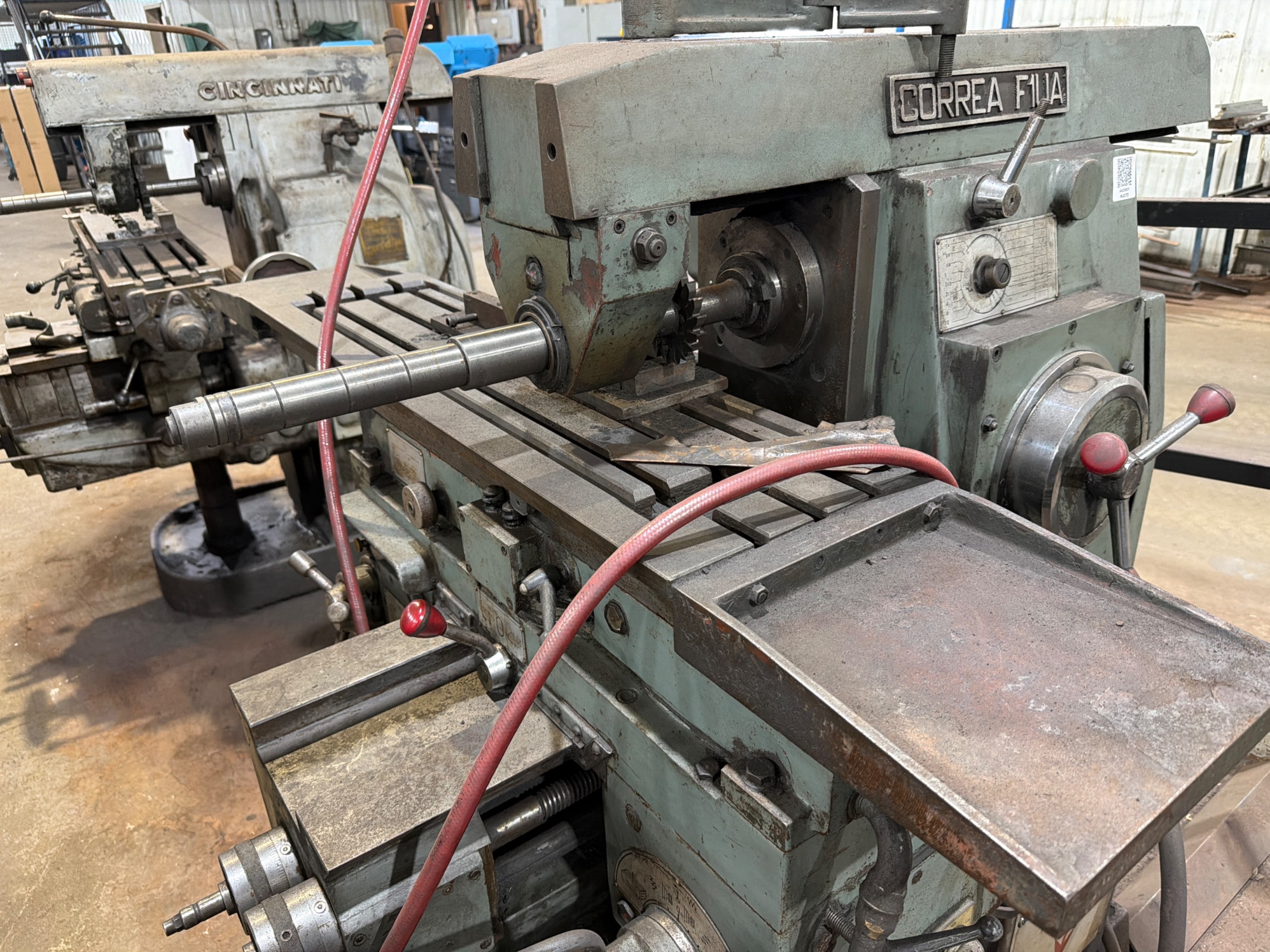 THE CORREA F1UA IS A HORIZONTAL MILLING MACHINE DESIGNED FOR VERSATILE MACHINING OPERATIONS. IT FEATURES A TABLE MEASURING 1060 MM IN LENGTH AND 280 MM IN WIDTH. THE MACHINE PROVIDES A LONGITUDINAL TRAVEL (X-AXIS) OF 820 MM, A CROSS TRAVEL (Y-AXIS) OF 220 MM, AND A VERTICAL TRAVEL (Z-AXIS) OF 420 MM. THE SPINDLE IS EQUIPPED WITH AN ISO 40 TAPER, SUITABLE FOR VARIOUS MILLING TOOLS. THIS MODEL TYPICALLY OPERATES AS A KNEE AND COLUMN TYPE MACHINE, PROVIDING A STABLE PLATFORM FOR HORIZONTAL AND UNIVERSAL MILLING TASKS.