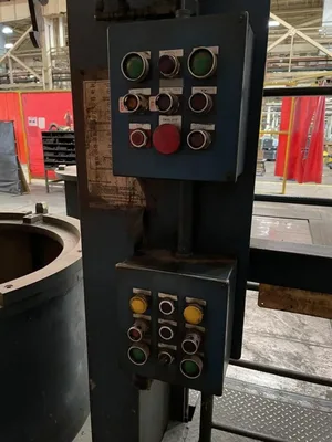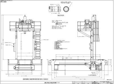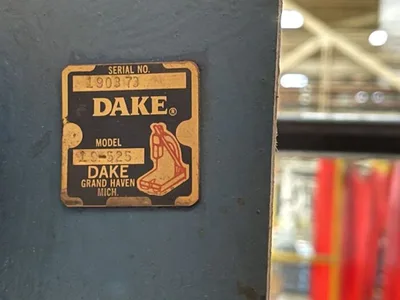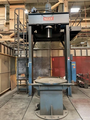 THE DAKE “H”-FRAME TRAVELING-HEAD HYDRAULIC STRAIGHTENING PRESS, MODEL 19-525 (SERIAL NO 190373), IS A 200 TON CAPACITY MACHINE. IT FEATURES A TRAVELING COLUMN H-FRAME DESIGN WITH RAILS ALLOWING FOR 150" OF HEAD TRAVEL. KEY SPECIFICATIONS INCLUDE A MAXIMUM STROKE LENGTH OF 40″ AND DAYLIGHT TO RAM RANGING FROM 90″ MINIMUM TO 130″ MAXIMUM. THE DISTANCE BETWEEN HOUSINGS IS 78″.
