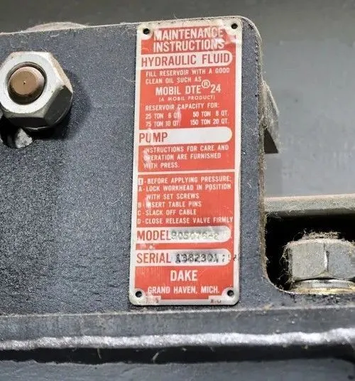 DAKE 905076-2 HYDRAULIC STRAIGHTENING PRESS 75 TON 10" STROKE 2 HP